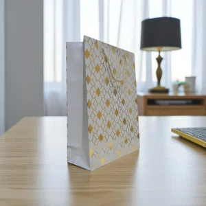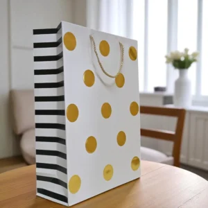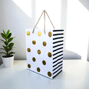 Gold Polka Dotted White Paper Bags (Set of 6)