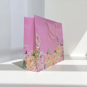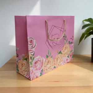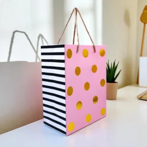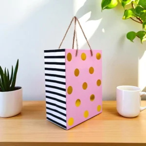 Gold Polka Dotted Pink Paper Bags (Set of 6)