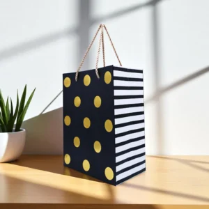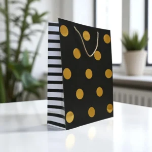 Gold Polka Dotted Black Paper Bags (Set of 6)