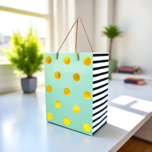 Gold Polka Dotted Pista Paper Bags (Set of 6)