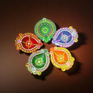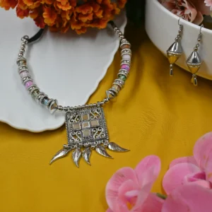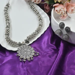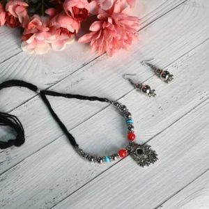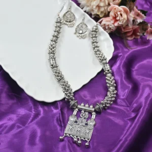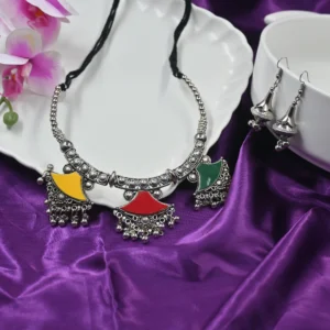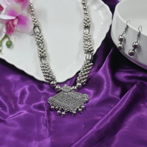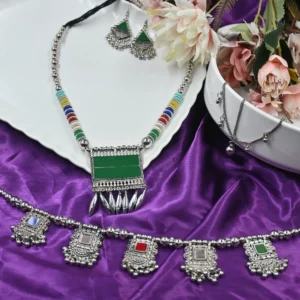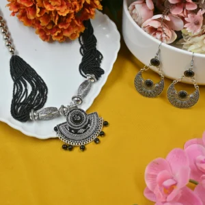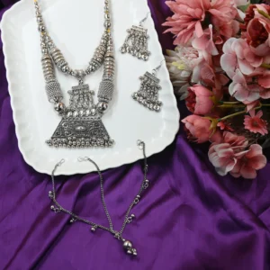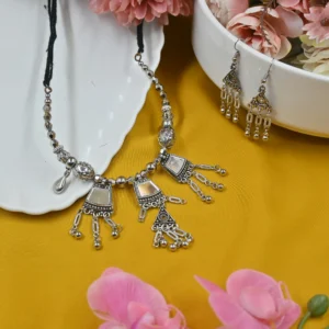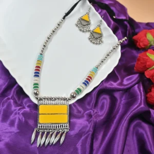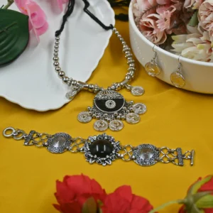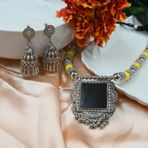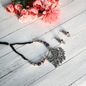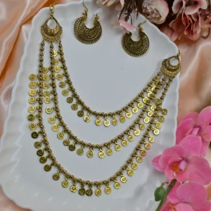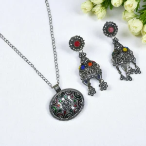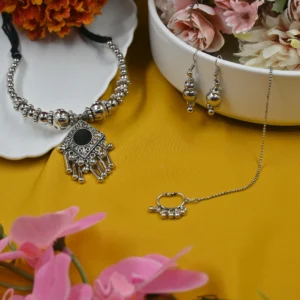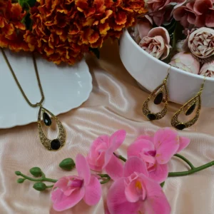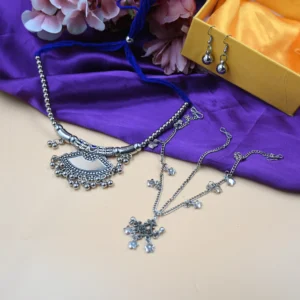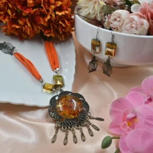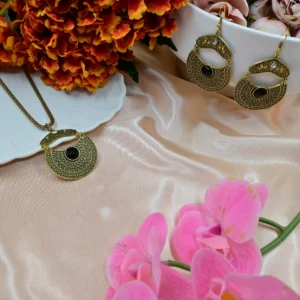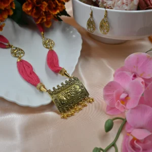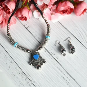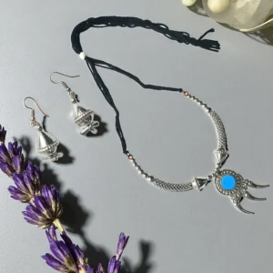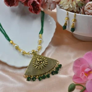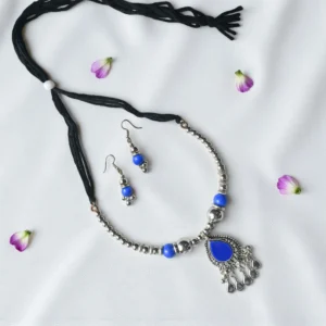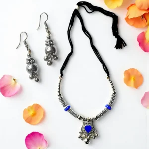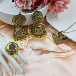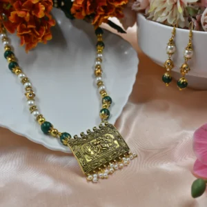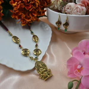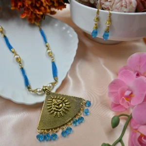 Gold Ganpati Blue & Gold Pendant Earring Set