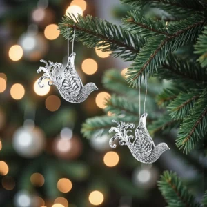 3D Glitter Bells Silver Decoration