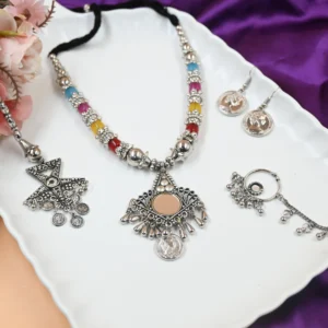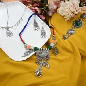 Vibrant Oxidised Silver Navratri Jewellery Set