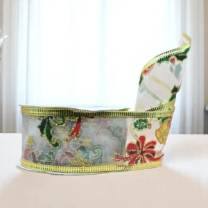 Festive Blue Organza Stocking Ribbon, 6Cm Wide