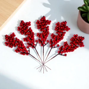 Red Poinsettia Flower Bunch – 7 Heads – Set of Two