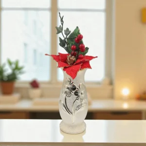 Red Poinsettia Flower Bunch Glitter 20 CM – Set of Two