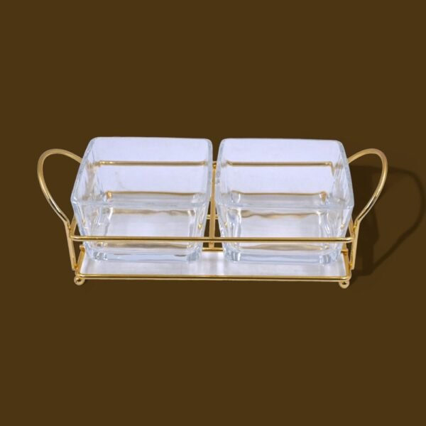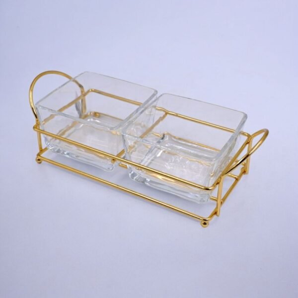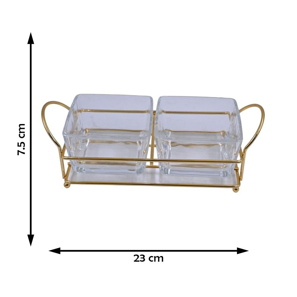 Transform your dining experience with our stunning set of 2 Glass Bowls with Metal Gold Stand. These bowls are not just kitchen essentials but a beautiful way to add a touch of elegance to your table setting.