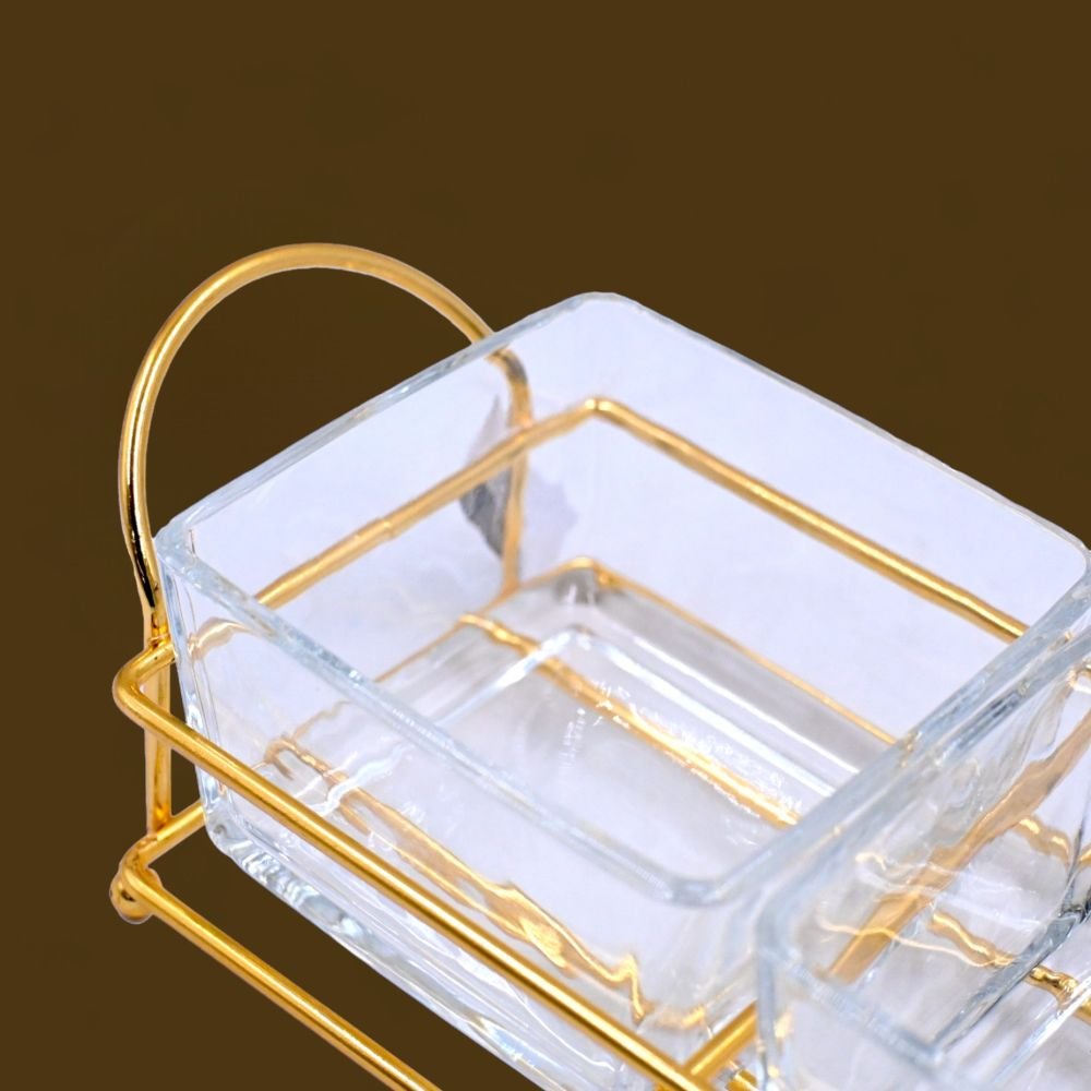 HomeTranquil Living ArraySizzle with StyleKitchen Storage & Containers Elegant Glass Bowls with Gold Metal Stand