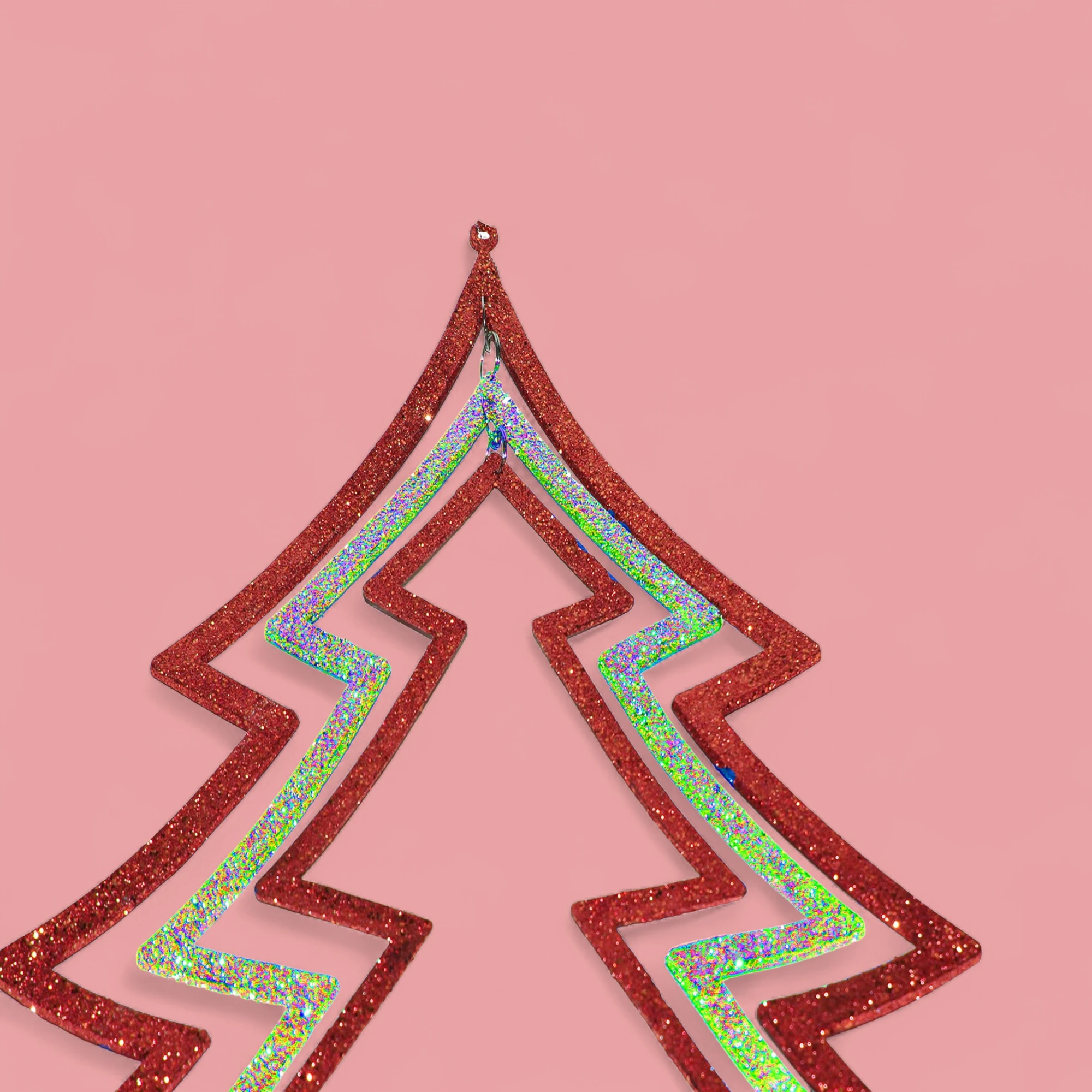 Designed with a keen eye for details, this tree boasts a playful three-dimensional design that adds depth and character. Its sturdy construction ensures it hangs beautifully, whether on your Christmas tree, in your window, or as a part of a holiday-themed display.