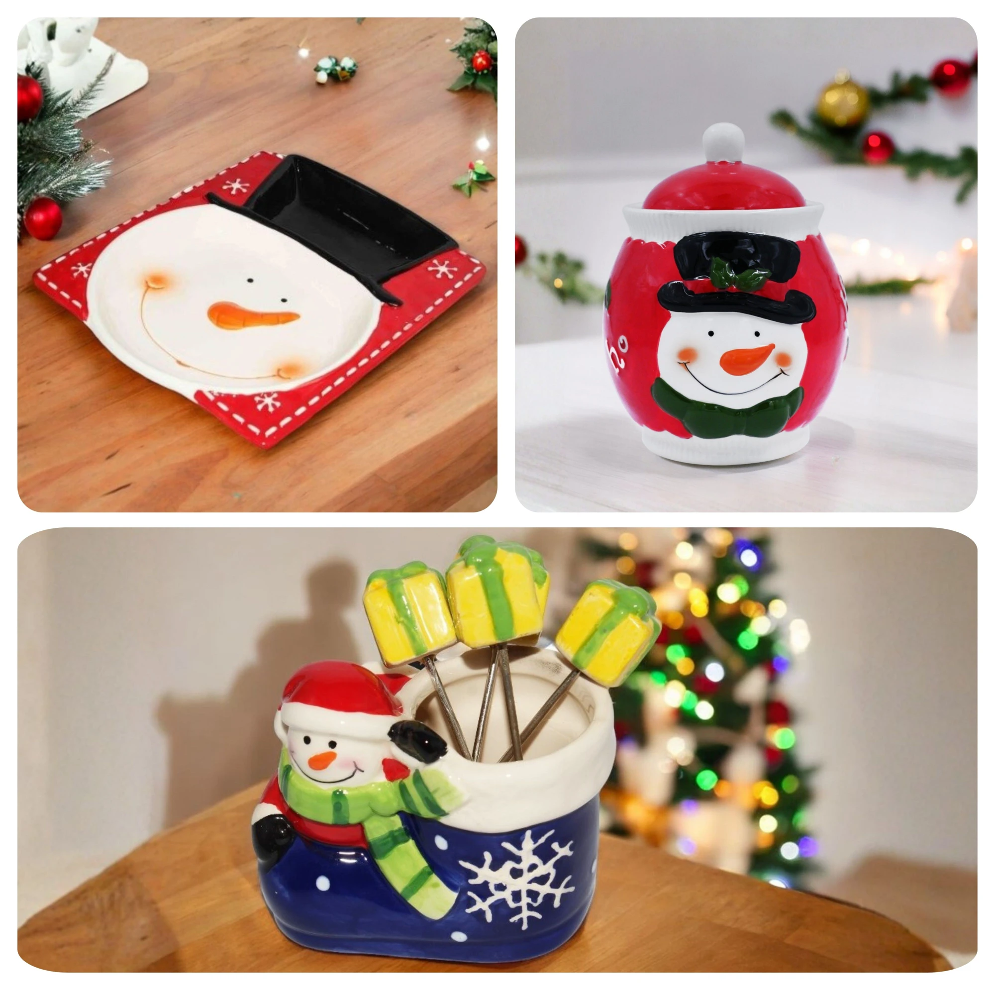 – Snowman Square Tray: Perfect for serving snacks or as a festive centerpiece. Its vibrant design makes it a stylish addition to your holiday gatherings.