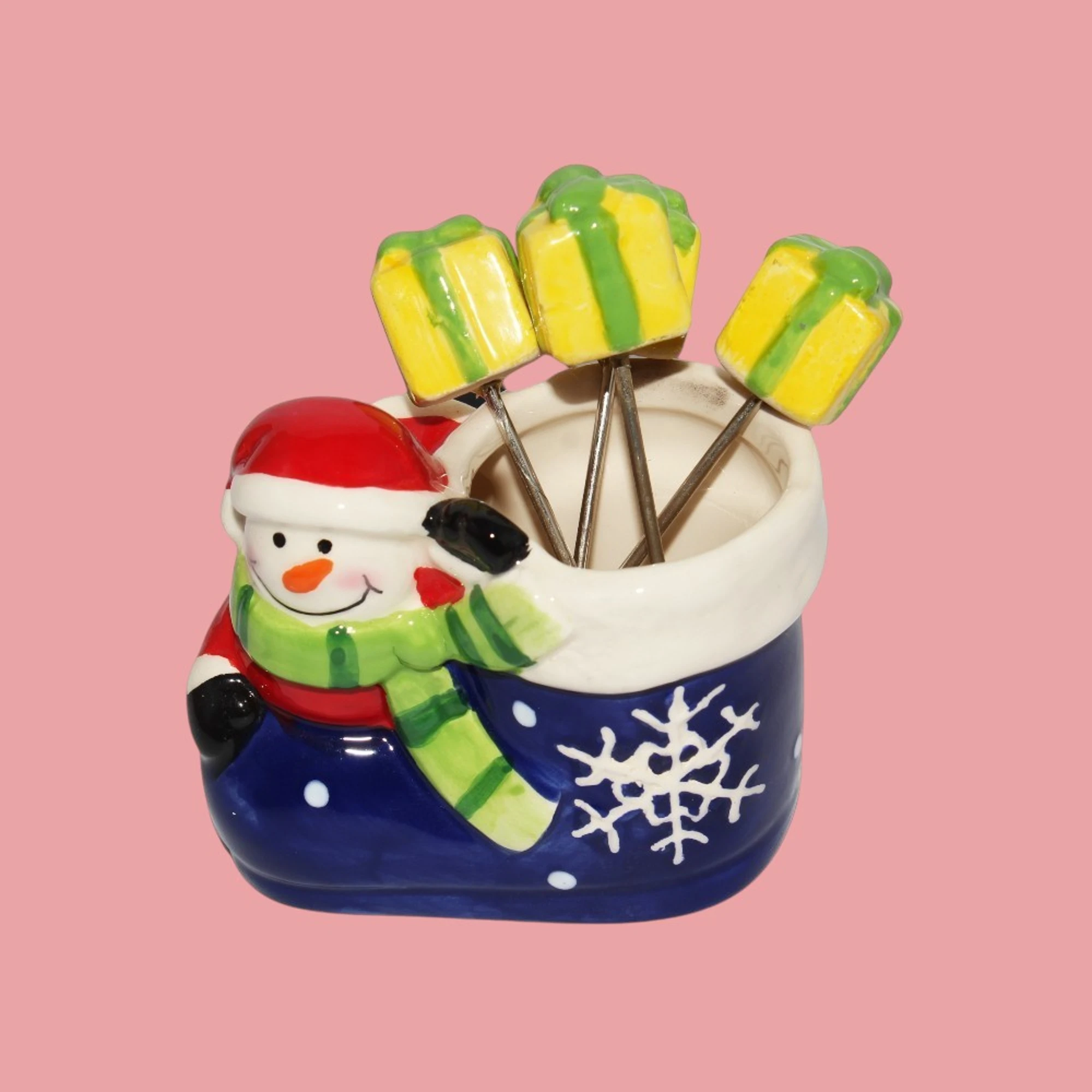 – Gift Fruit Fork Holder: An adorable snowman holder that adds whimsical joy to any table setting. Ideal for presenting fruit, cheese, or appetizers at parties.