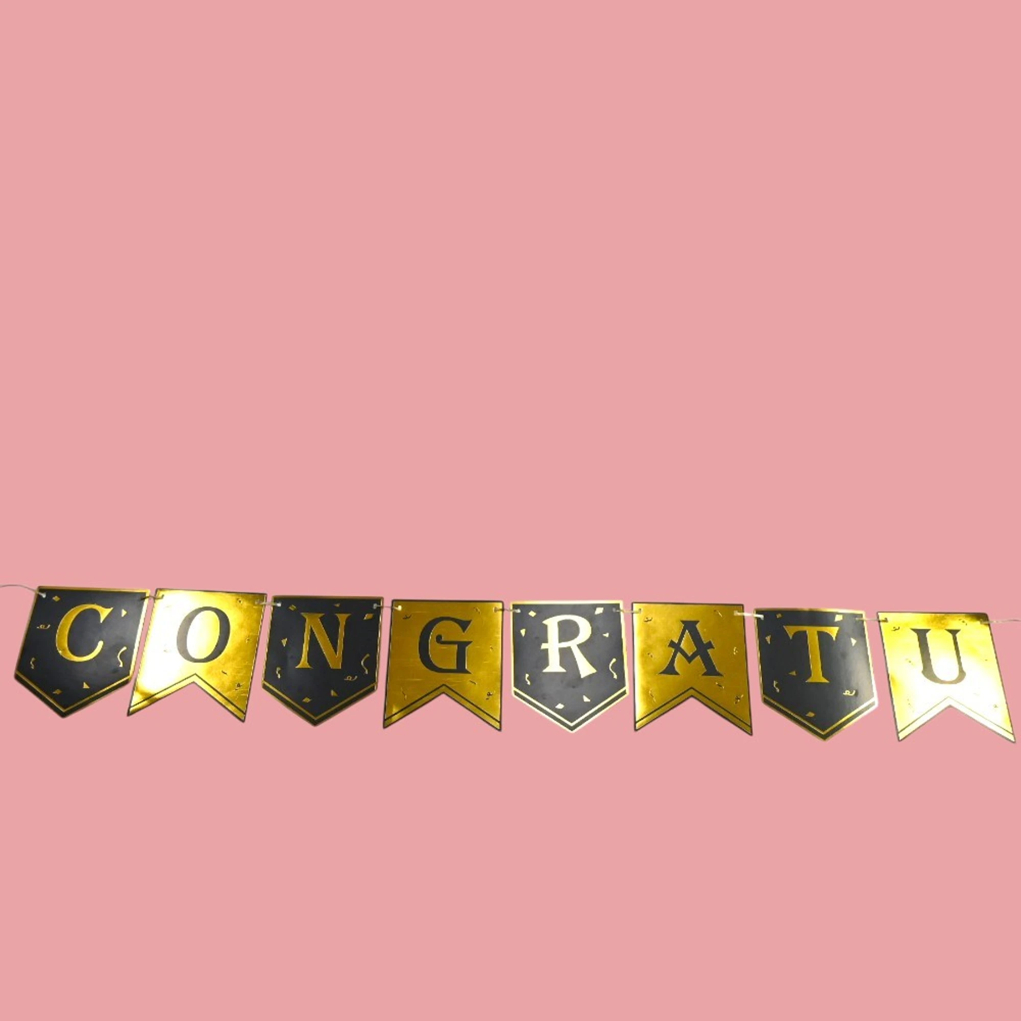 The Black Gold Congratulations Banner measures 6 feet, ensuring your message is easily read by everyone at the party. it’s not just a banner, but a centerpiece that sets the tone for your festive gathering. Join in the celebration with style and let the honoree know just how proud you are. Whether it’s indoors or outdoors, this banner promises to bring smiles and endless photo opportunities.