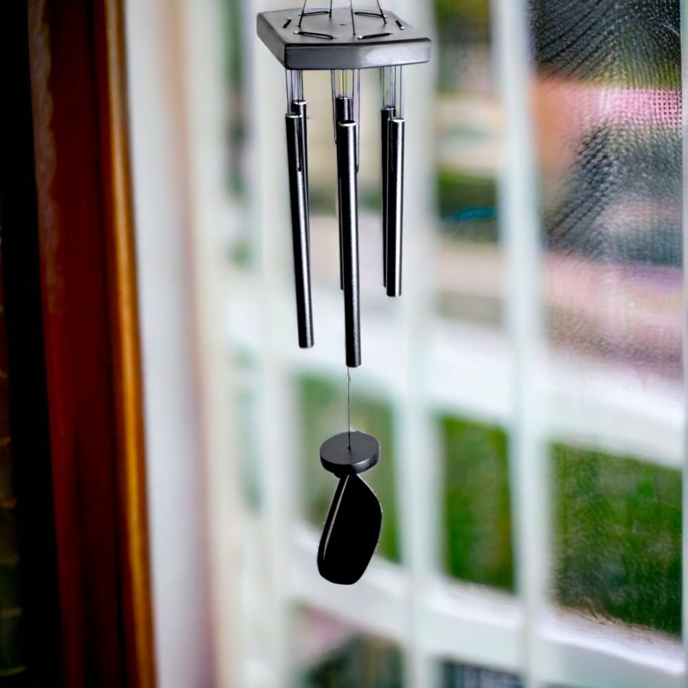 In the quietude of dawn or the gentle twilight, ?Harmony?s Melodic Whispers? graces your space. Each meticulously crafted metallic tube catches the breeze, weaving a symphony that dances through the air. Its sleek finish reflects sunlight, creating a mesmerizing visual interplay. The teardrop-shaped pendulum guides the chimes into their enchanting song. Whether indoors or outdoors, this wind chime promises tranquility and refined beauty.