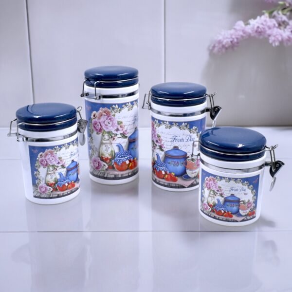 Elegant Blue Floral Canister Set of 4