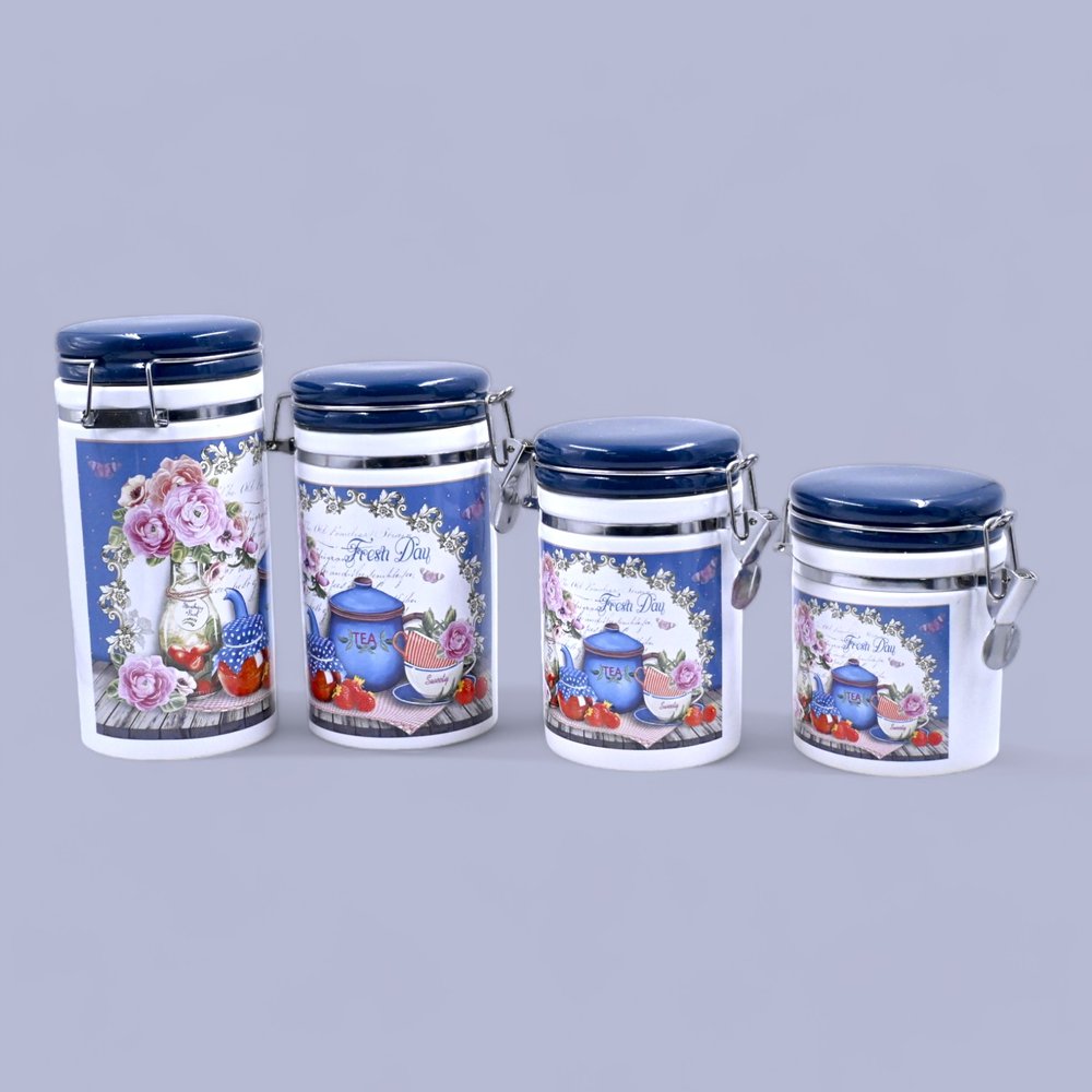 Breathe life into your kitchen with our Elegant Blue Floral Canister Set of 4. This set combines function with fabulous design, making storage solutions both practical and pretty. Each canister is adorned with a lovely blue floral pattern that adds a quaint, rustic charm to any decor.