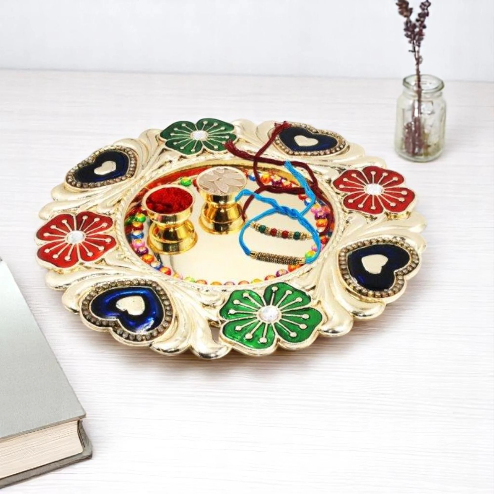 – Intricately designed thali: Featuring traditional patterns that bring a sense of devotion and grace.