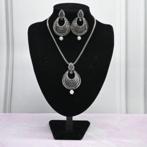 Step into elegance with our charming Ethnic Necklace & Earring Set, a perfect blend of traditional beauty and contemporary style. This set features a stunning necklace adorned with intricate patterns and a pair of elegant earrings that exude a timeless appeal.