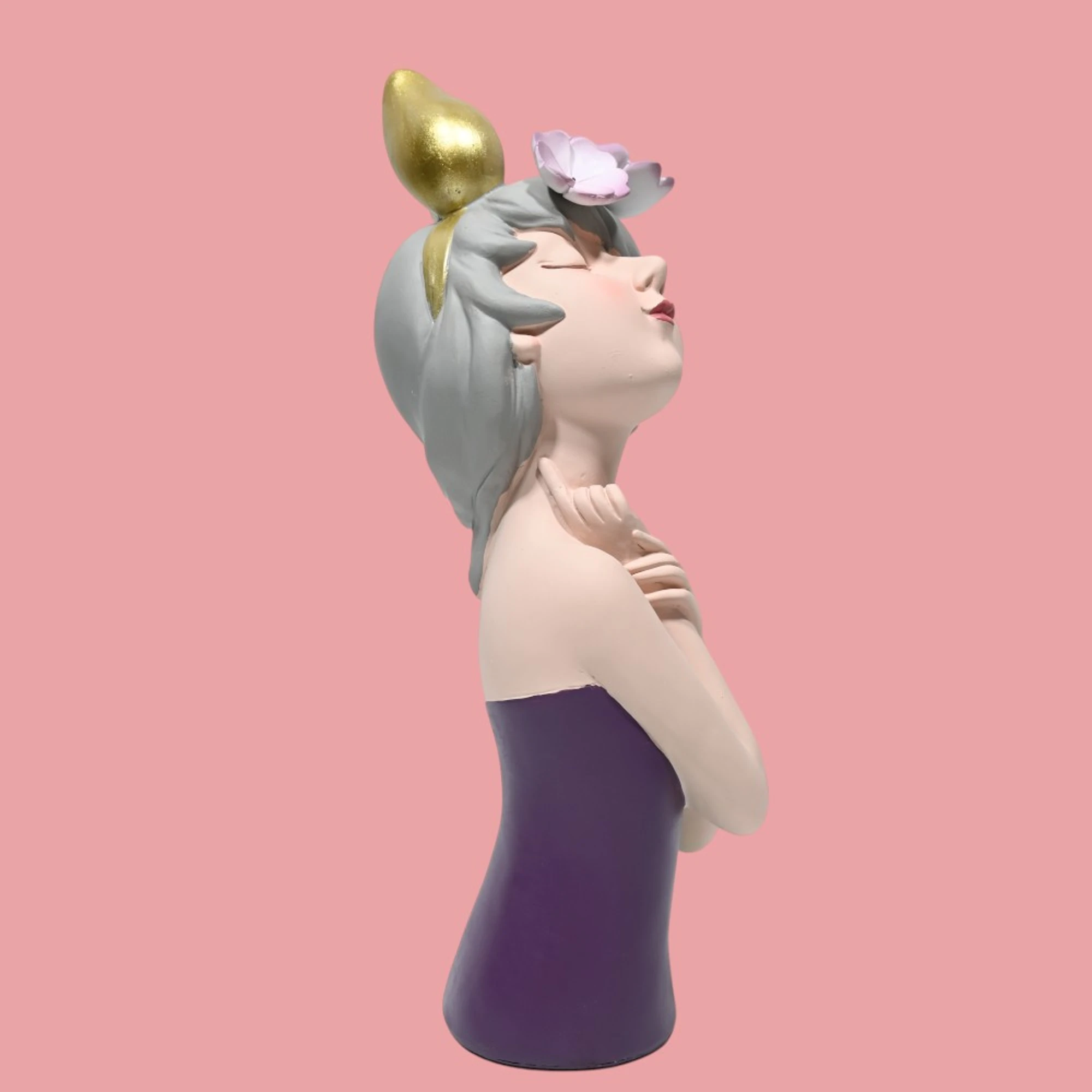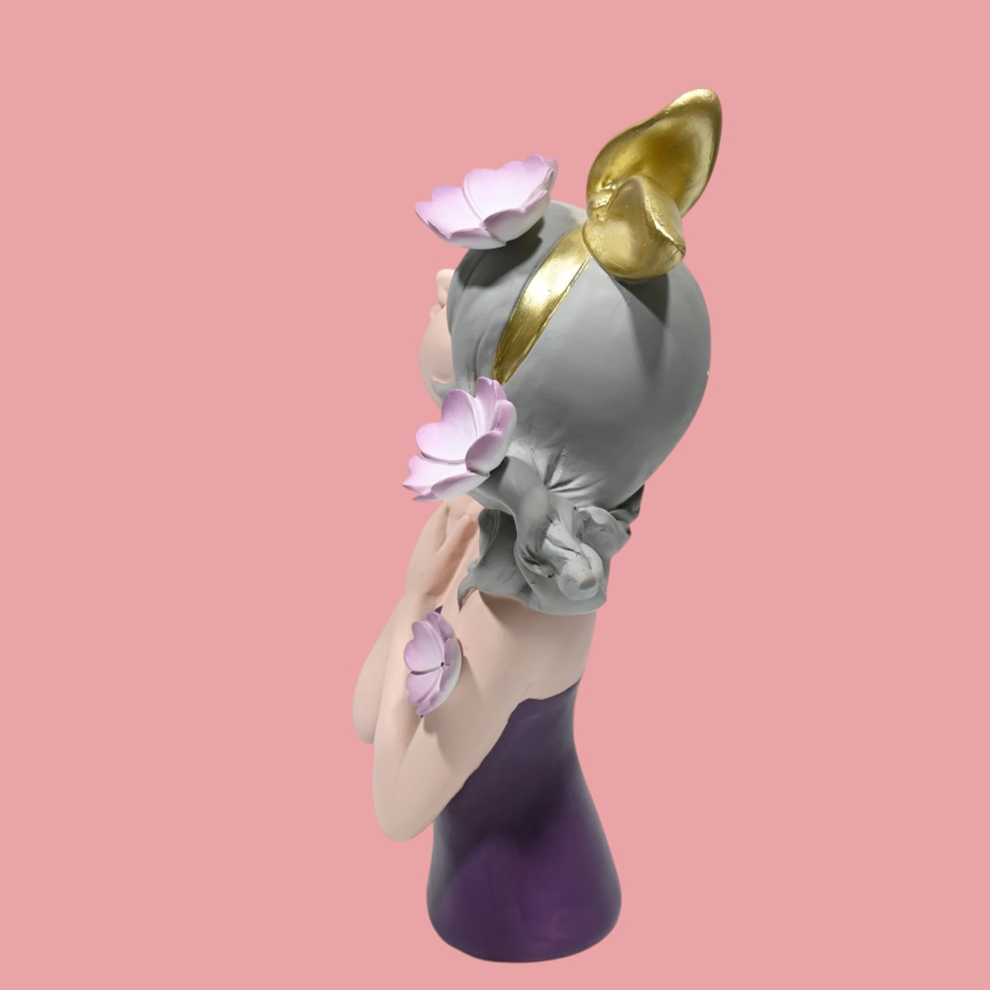 The soft mauve color provides a soothing and calming presence, perfect for creating a serene atmosphere in your home. Whether perched on a mantel, nestled on a bookshelf, or gracing your bedside table, this figurine is a testament to fine craftsmanship and artistic flair.