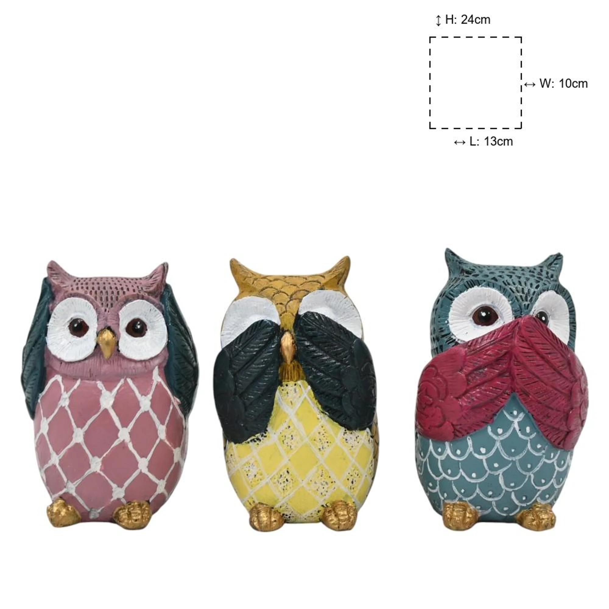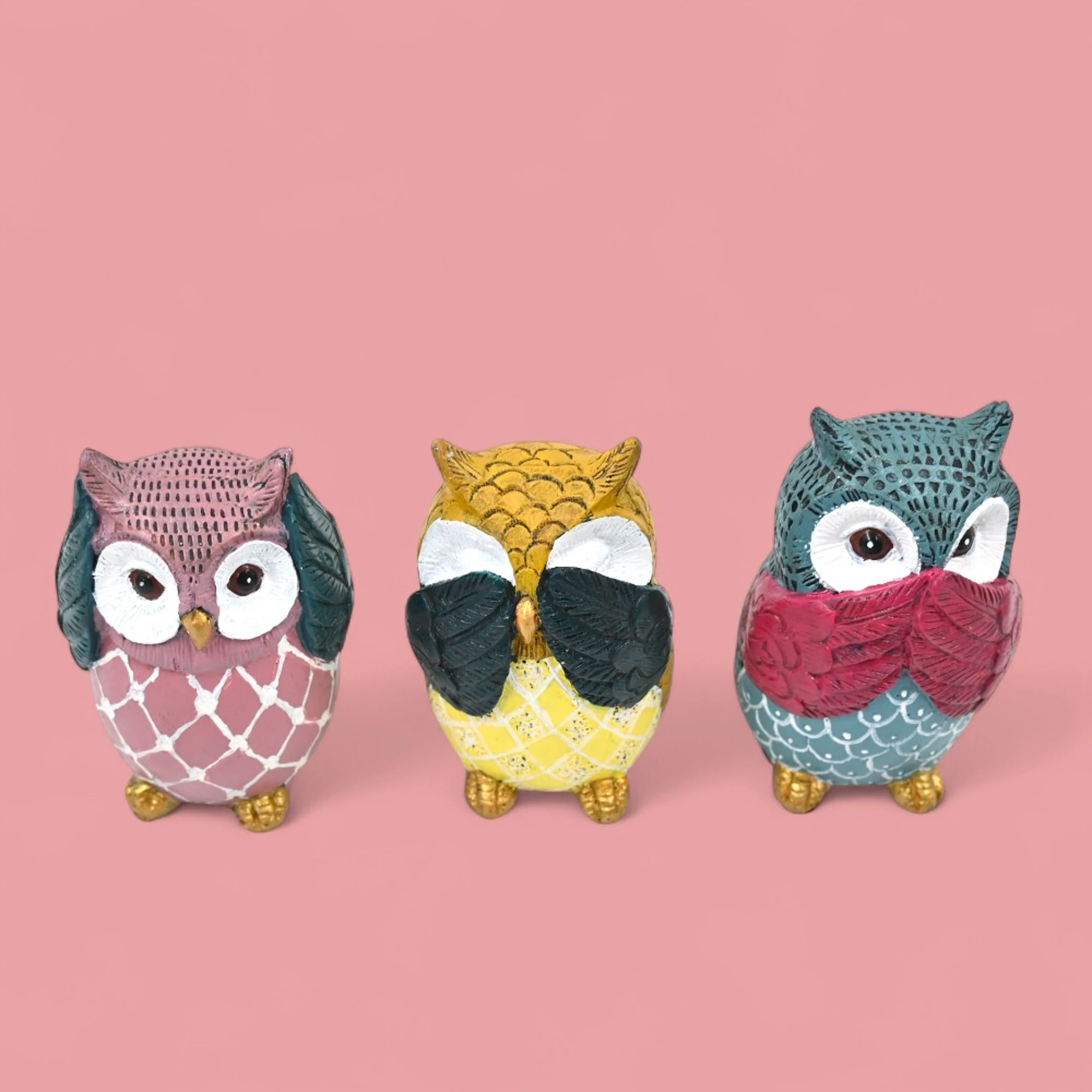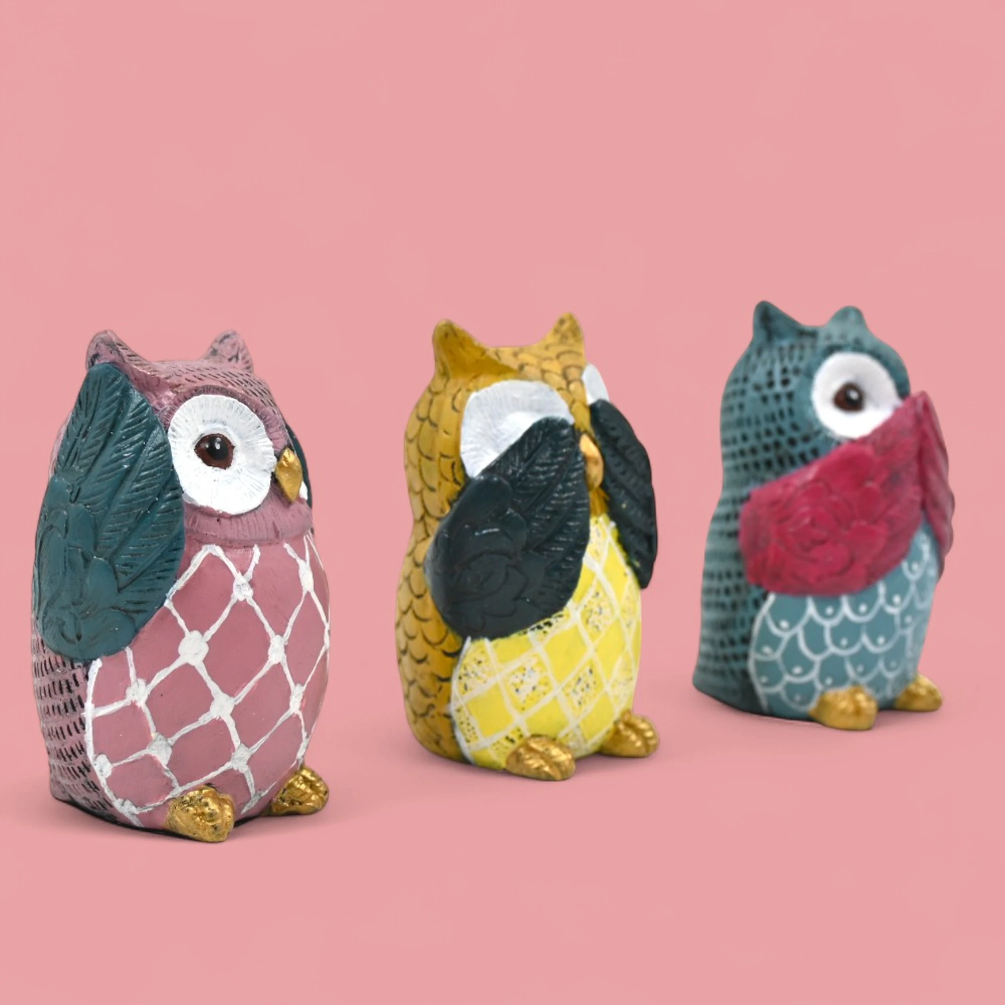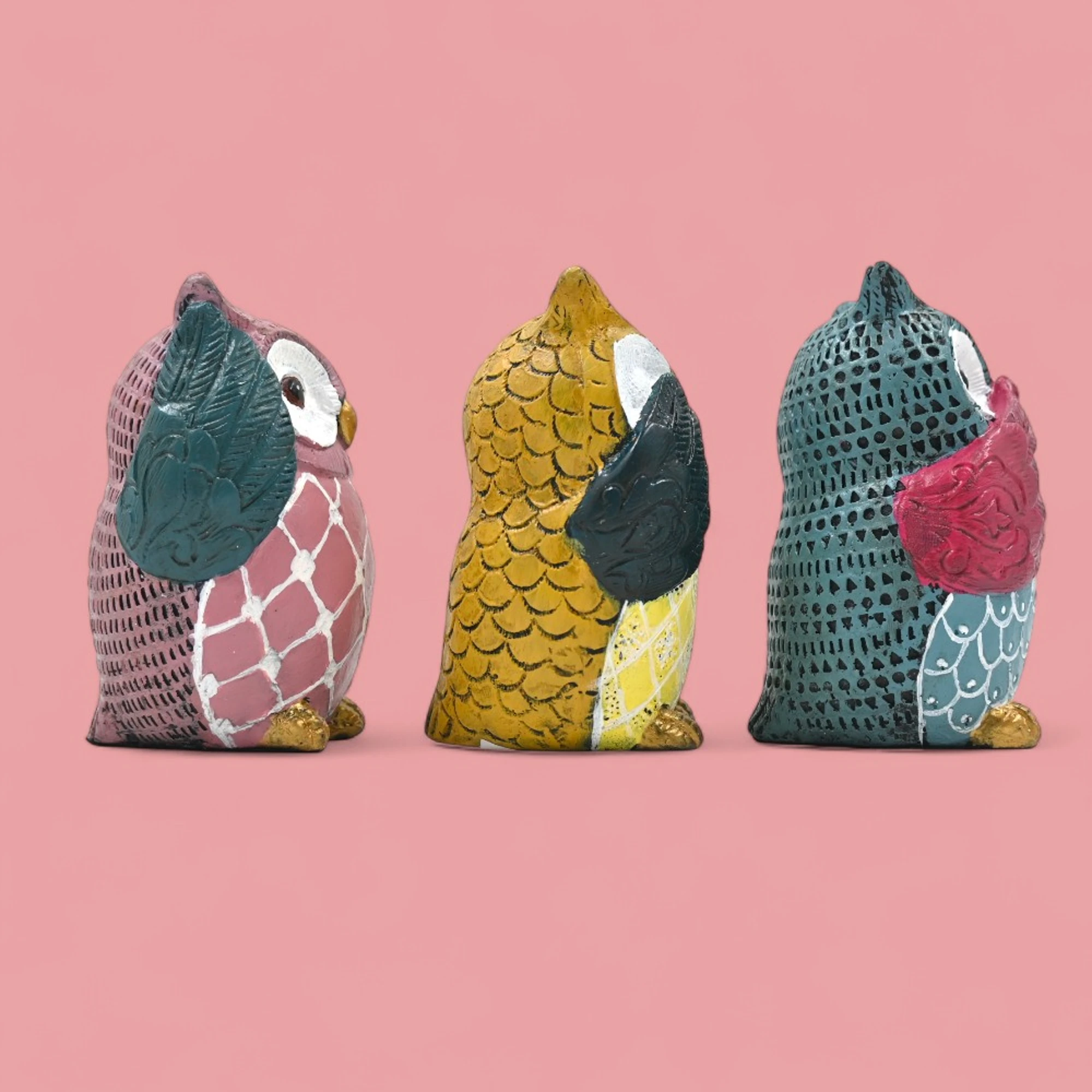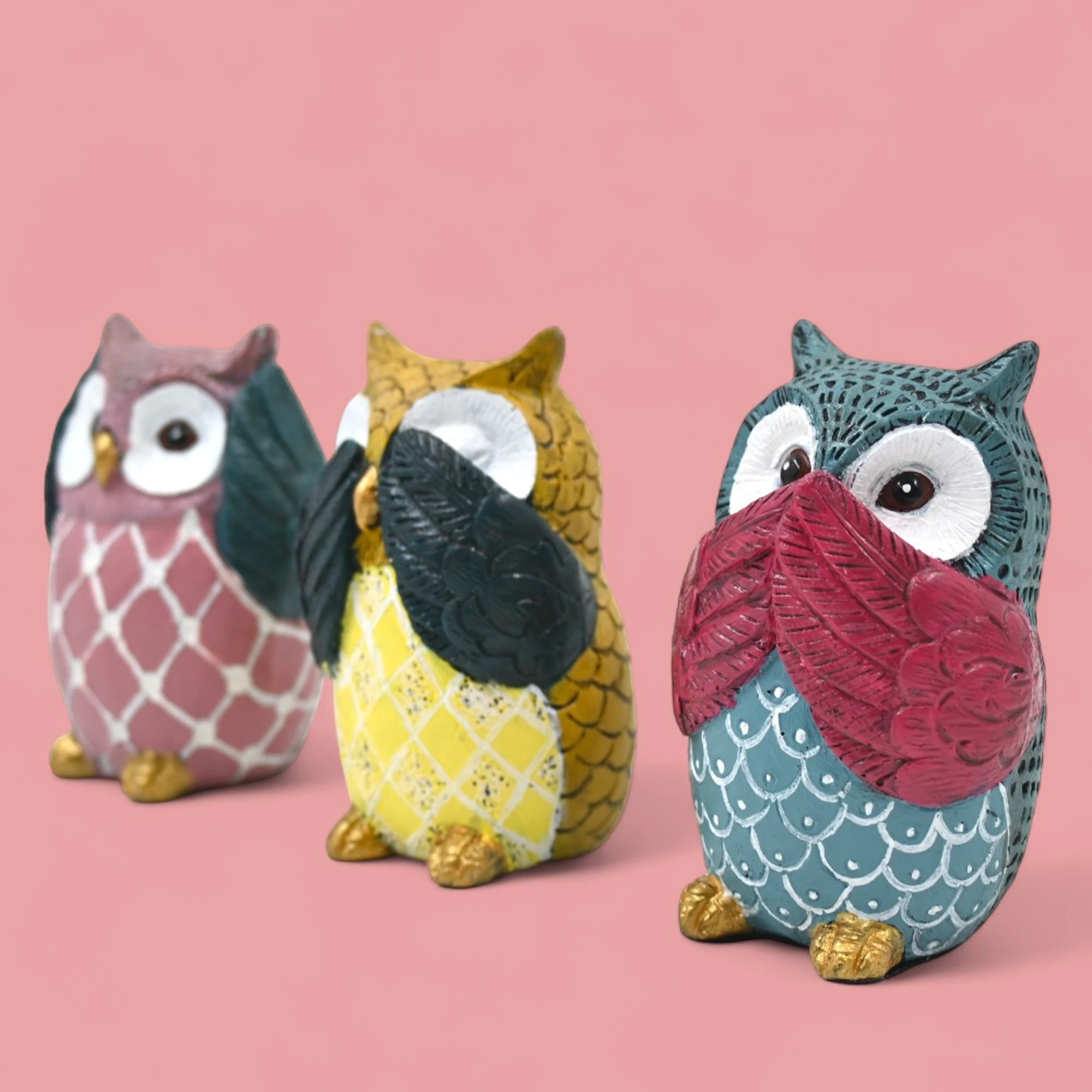 Owl lovers, rejoice! This delightful set of three owl figurines is here to add a whimsical touch to any space. Each owl is intricately crafted, capturing the wise and curious nature of these magnificent creatures.