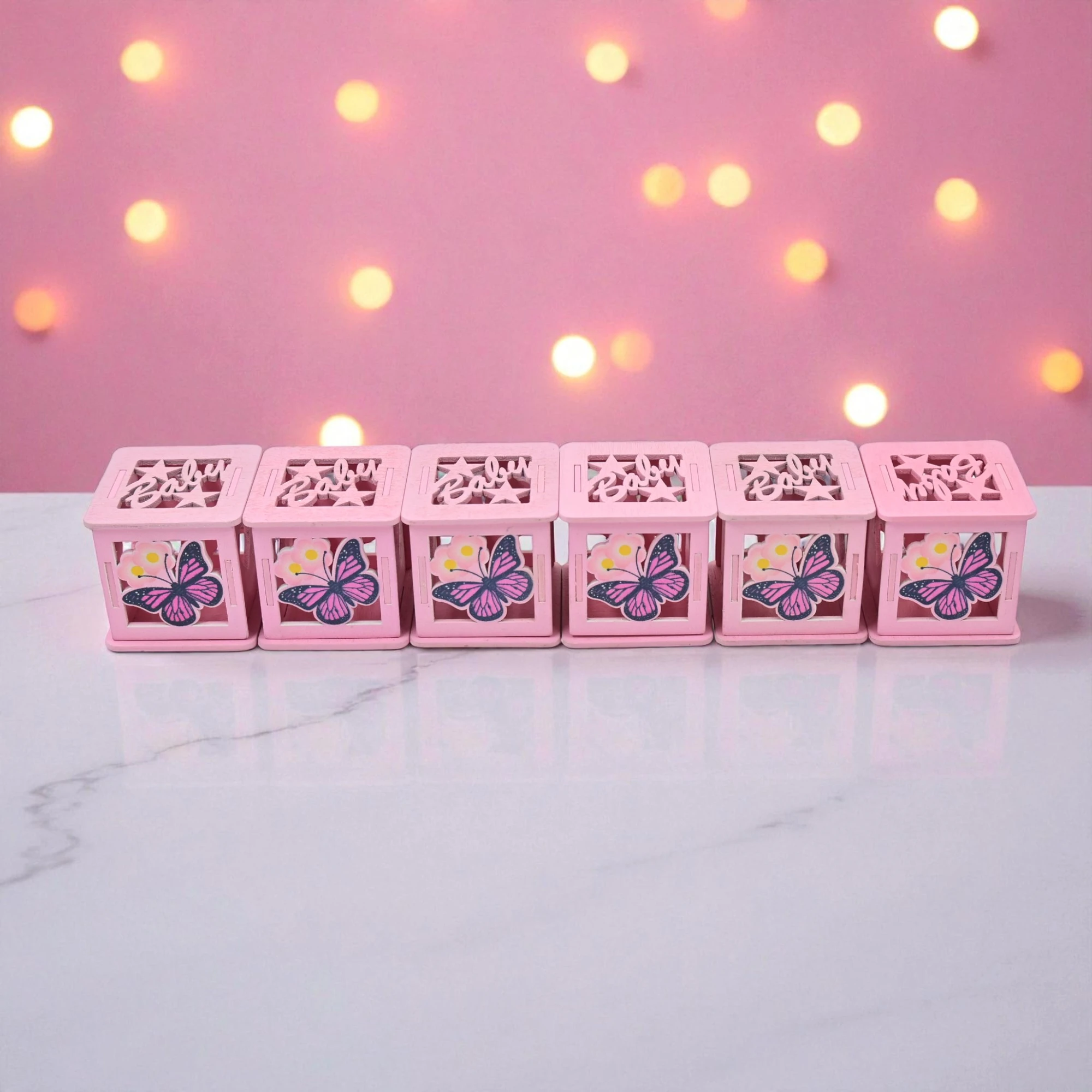 Create a whimsical touch to your little one’s nursery with our delightful Baby Box Wooden Pink Set of 6. This charming collection of wooden boxes is tailored to brighten up any room, offering both functionality and a playful aesthetic.