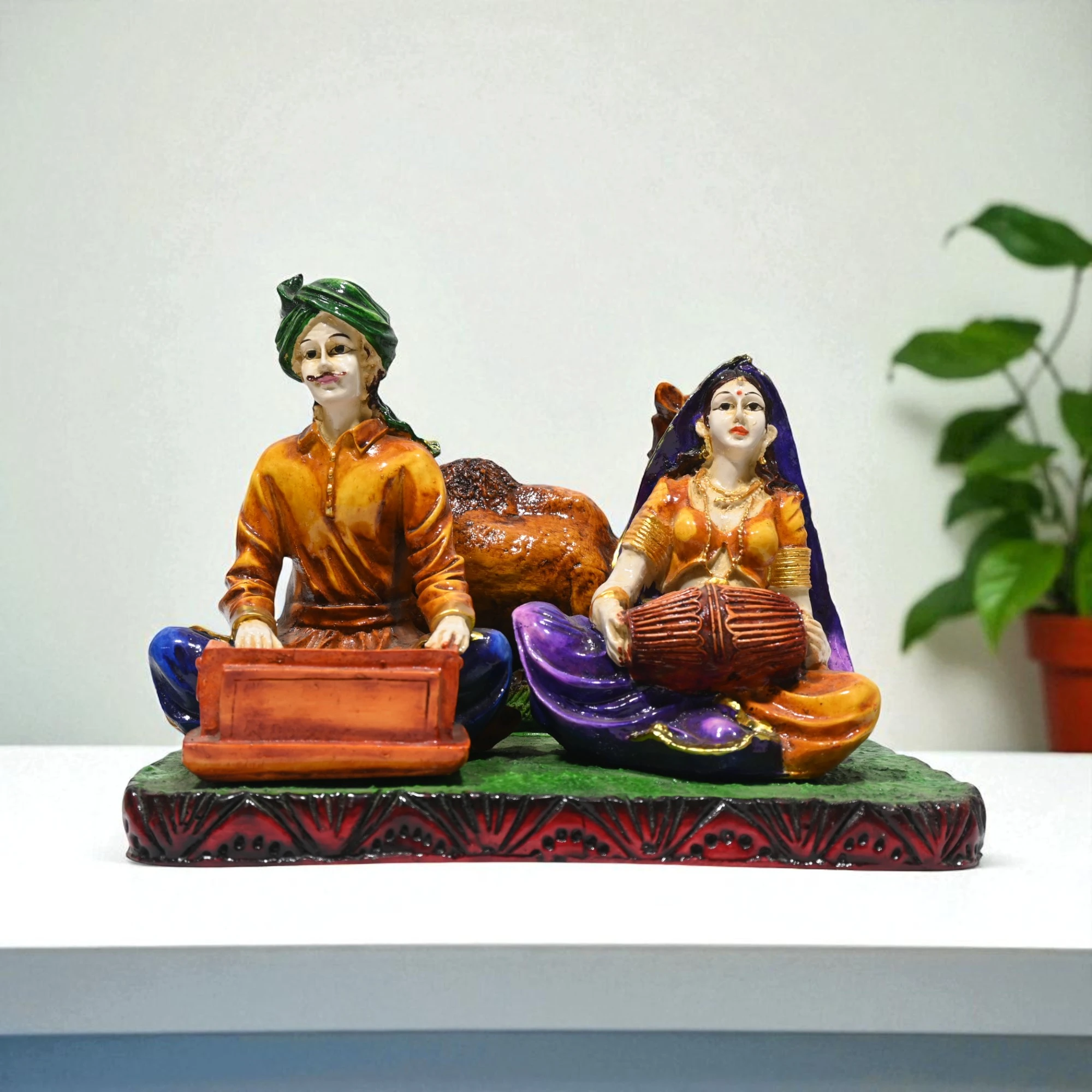 Bring the vibrant colors and rich traditions of Rajasthan into your home with this exquisite Rajasthani Couple with Camel figurine. This stunning piece captures the essence of India’s cultural beauty and charm, featuring a beautifully crafted couple in traditional attire, gracefully sitting with a majestic camel by their side.