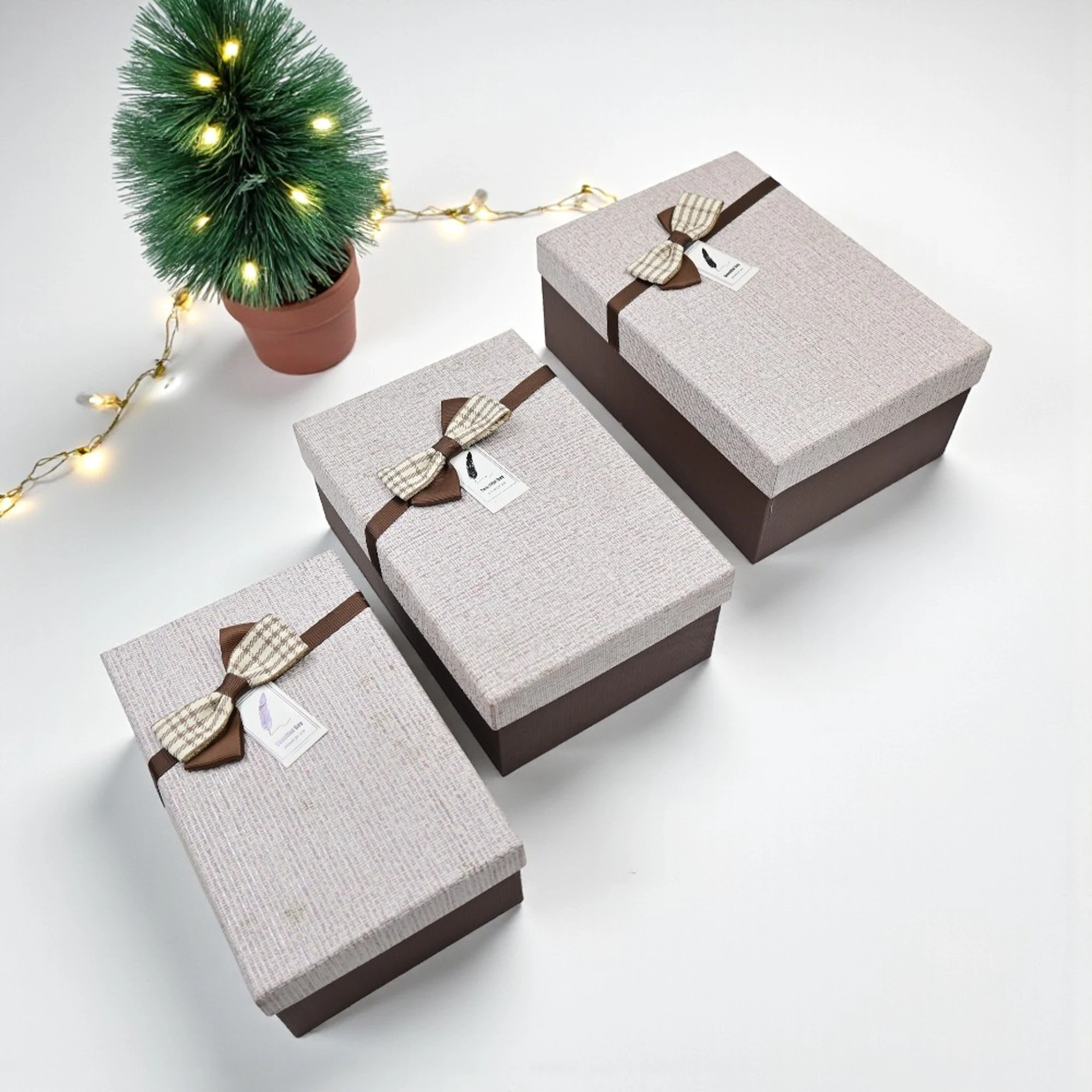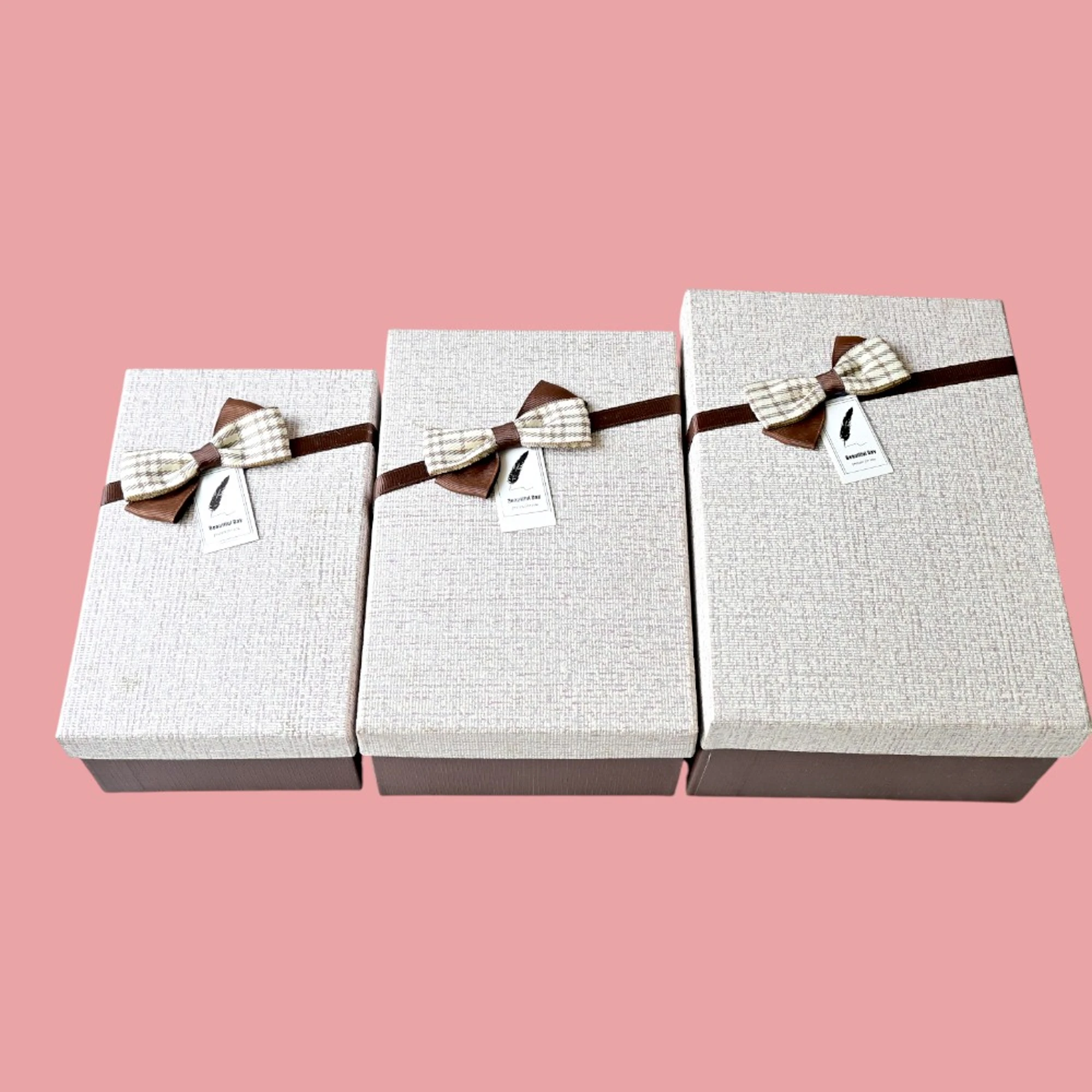 Delight in the perfect way to present your gifts with our charming set of Rectangle Gift Boxes. This set includes three elegantly designed boxes, each with their own unique dimensions to suit a variety of keepsakes.