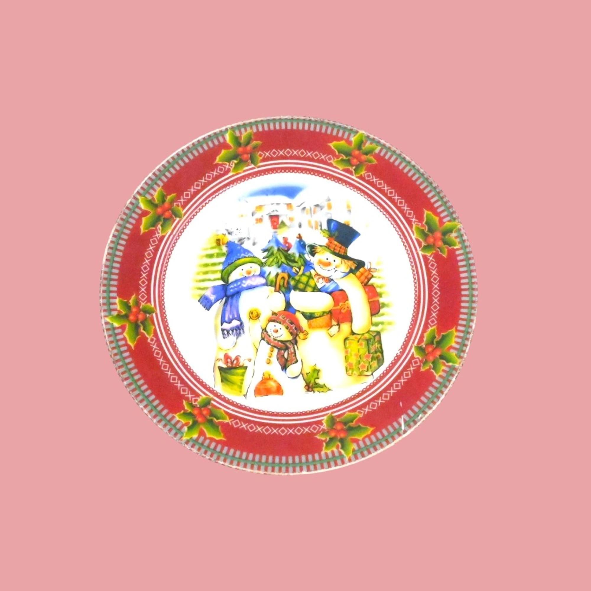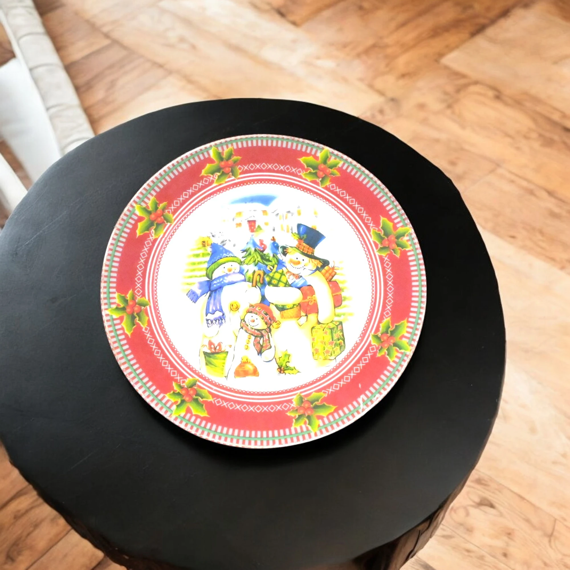 Bring some winter wonder and charm to your dining table with the delightful Snowman Family Dinner Plate. This 9-inch plate showcases a heartwarming snowman family gathering under a snowy night sky. Crafted with durable porcelain, it’s perfect for holiday feasting or cozy family dinners.