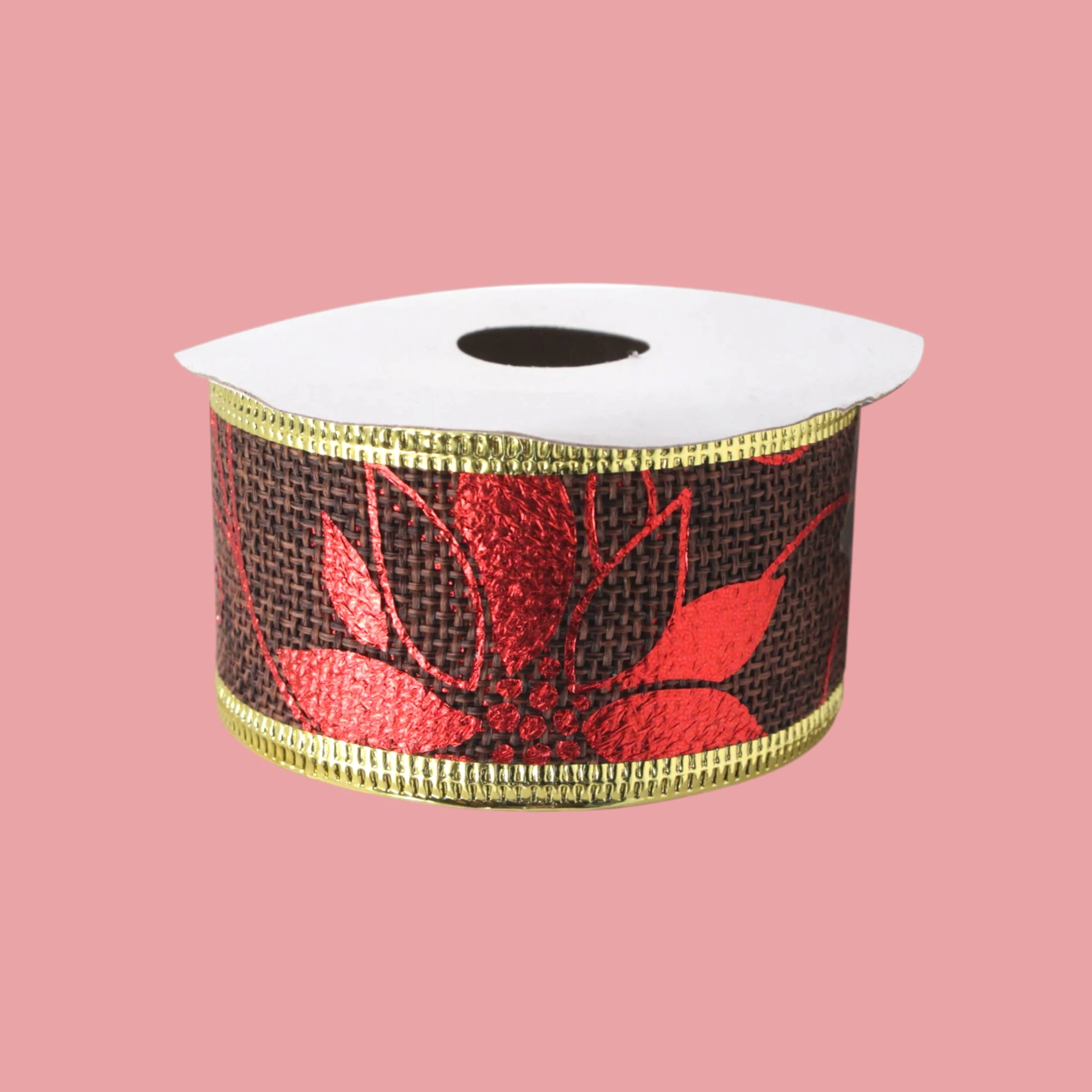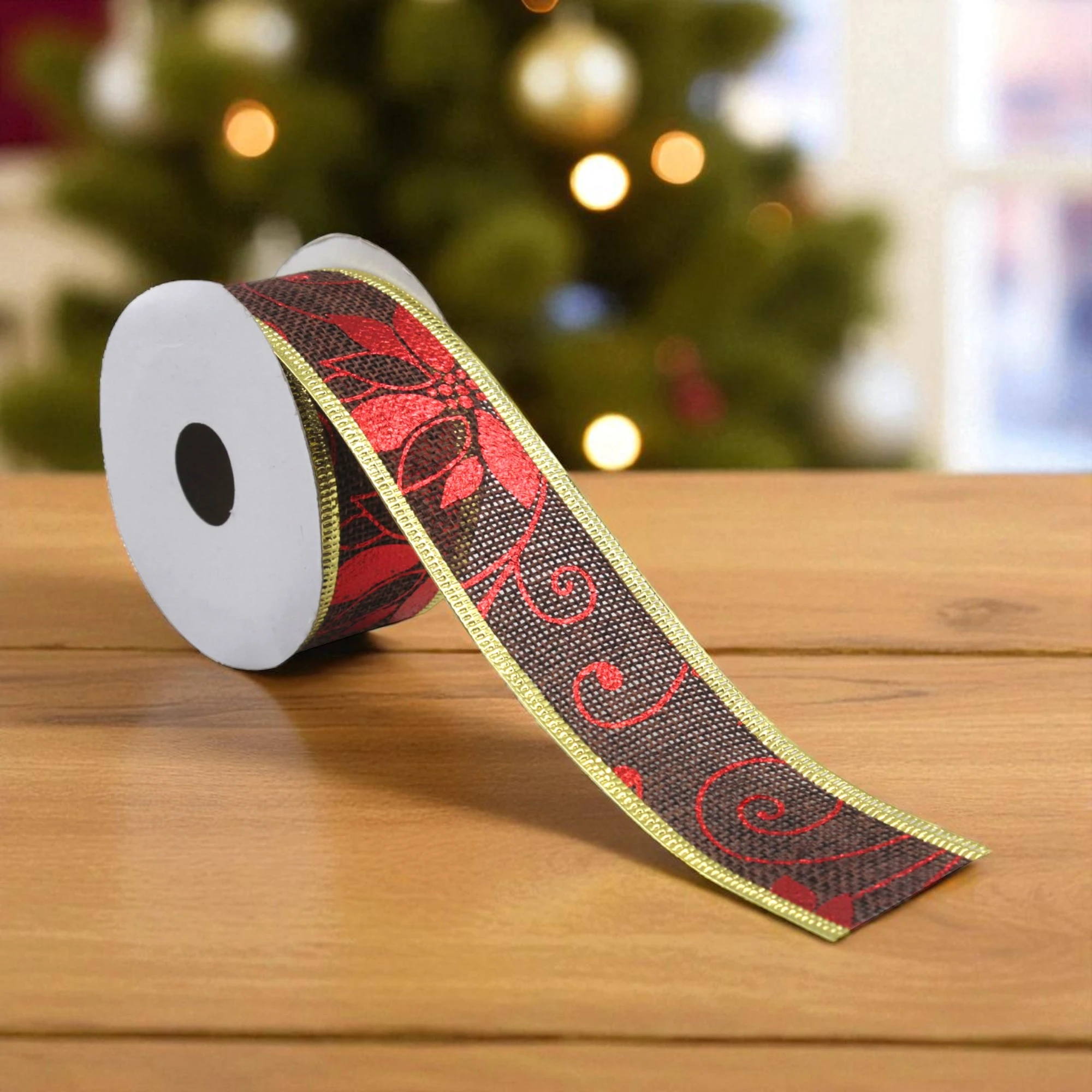 Charming Xmas Jute Poinsettia Ribbon Roll