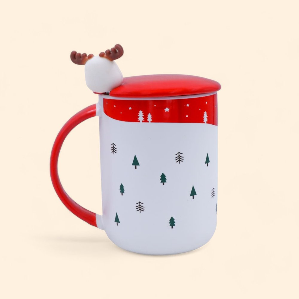 Festive Green Mug with Antler Lid & Spoon