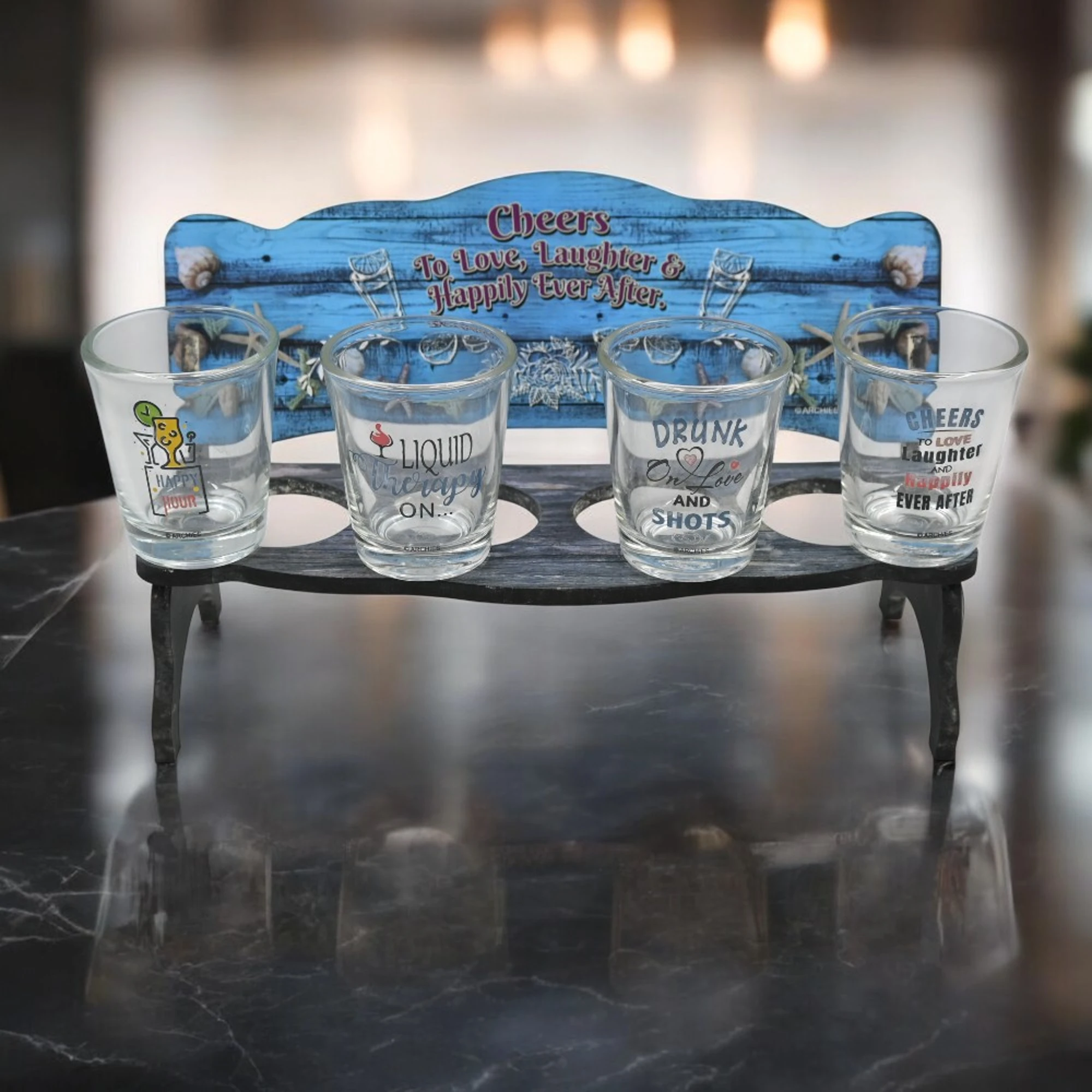 Enjoy your favorite spirit with a quirky twist! Our Cheers Shot Glass with Chair is perfect for those who love a touch of whimsy. This set includes a clear shot glass and a miniature chair stand, adding charm to your bar collection.