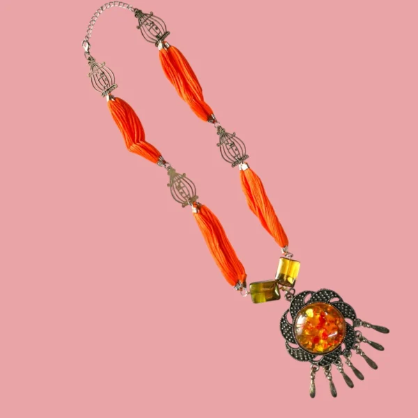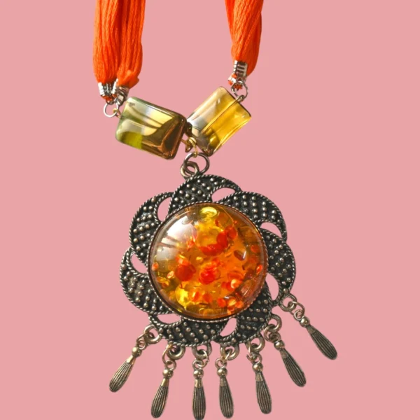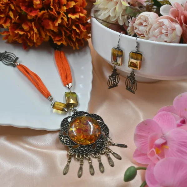 HomeHoliday HaulGarba VibesEthnic Jewellery Chic Orange Round Pendant Earring Set