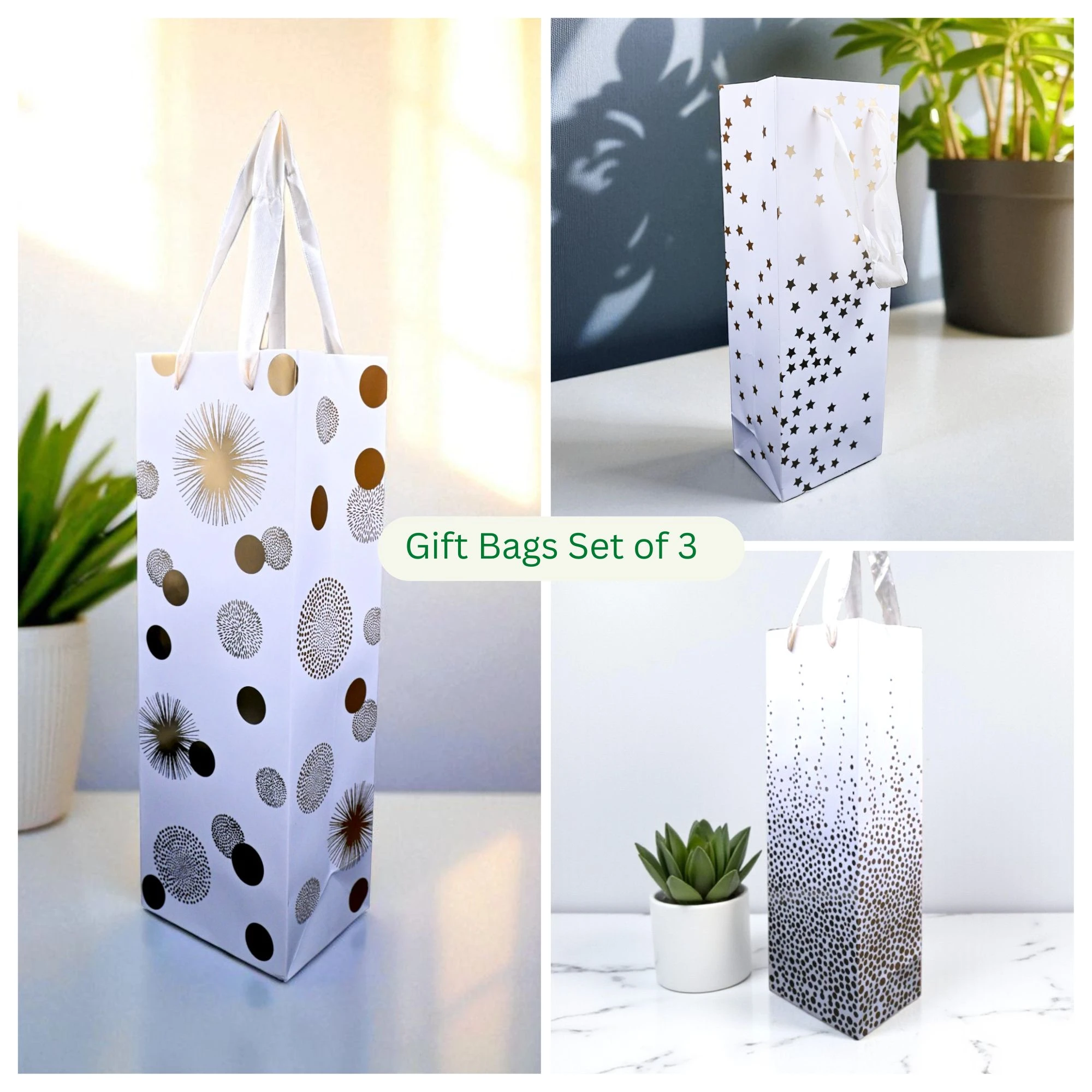 Chic Wine Bottle Paper Bags, Set of 3 Designs