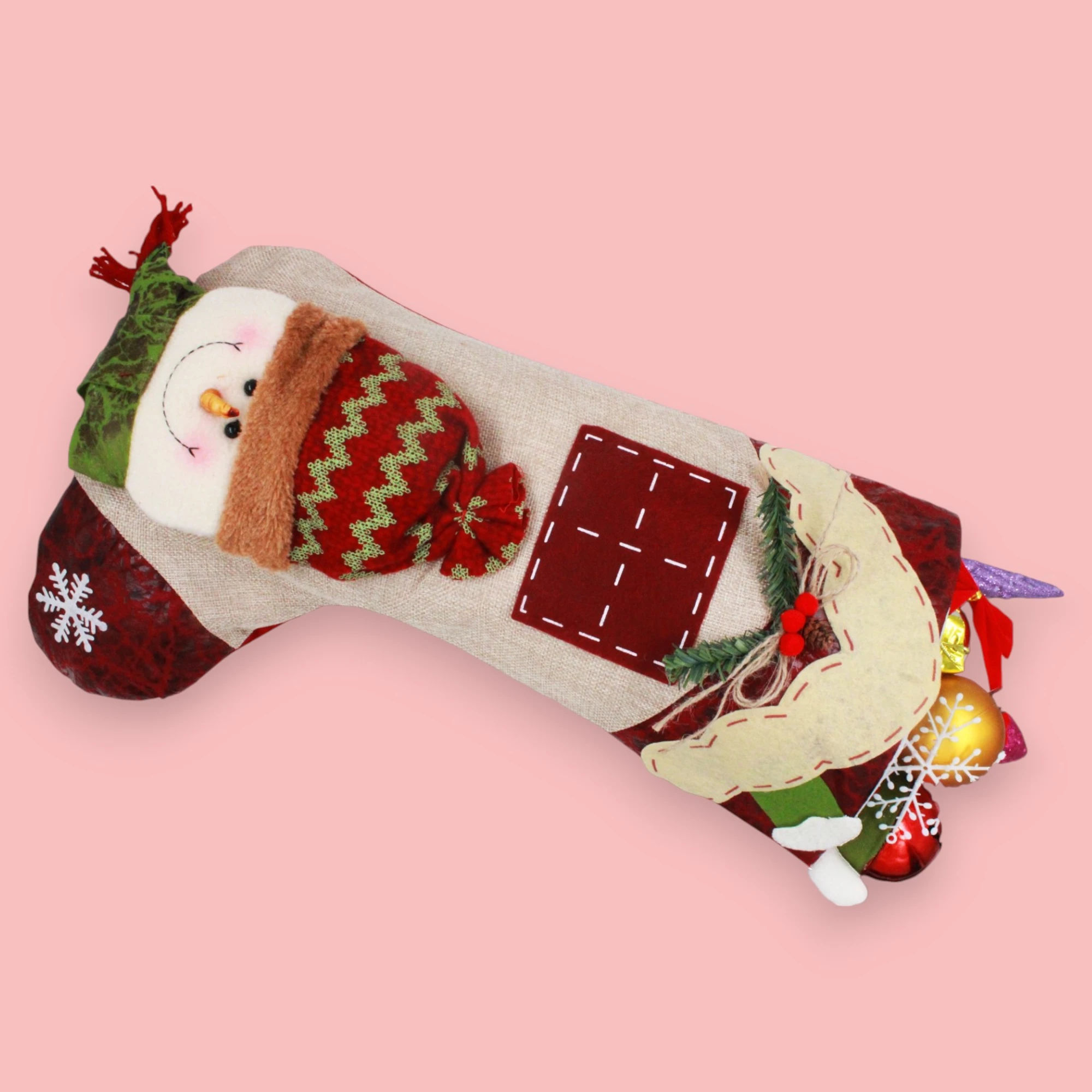 Christmas Stocking with Snowman Decoration