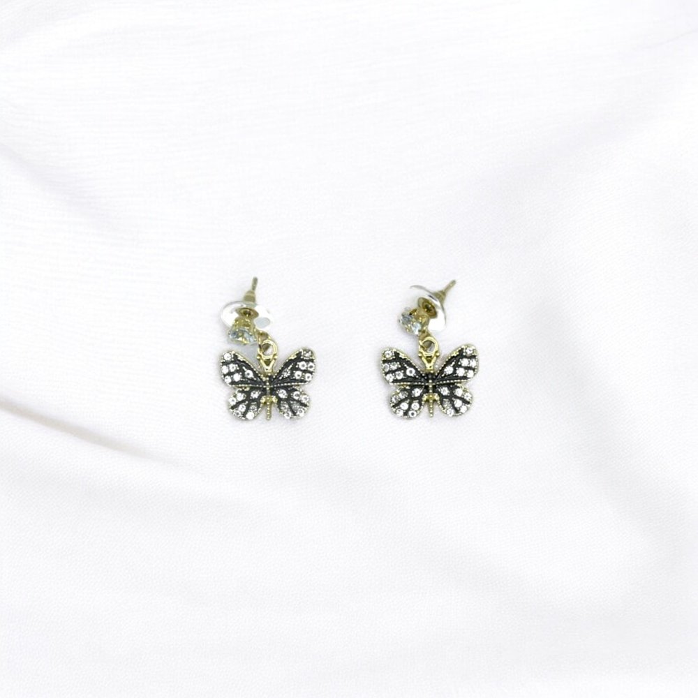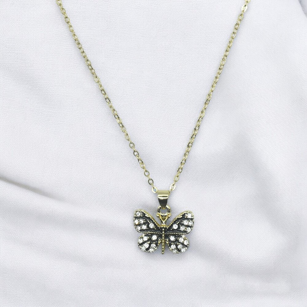 Discover the delicate charm of our butterfly-themed jewelry ensemble, meticulously crafted to add a touch of whimsy and grace to your attire. Each piece in this set features an intricately designed butterfly, symbolizing transformation and beauty. The necklace, with its slender chain, showcases a single butterfly pendant poised as if caught mid-flight, its wings spread in a display of exquisite detail. Accompanying the necklace are matching earrings, each adorned with a miniature counterpart of the pendant, creating a harmonious blend of elegance and symmetry. This set is not only an accessory but also a statement?a celebration of nature?s effortless beauty that you can carry with you. Whether it?s for a special occasion or everyday wear, these pieces promise to elevate your look with their timeless allure and understated sophistication.