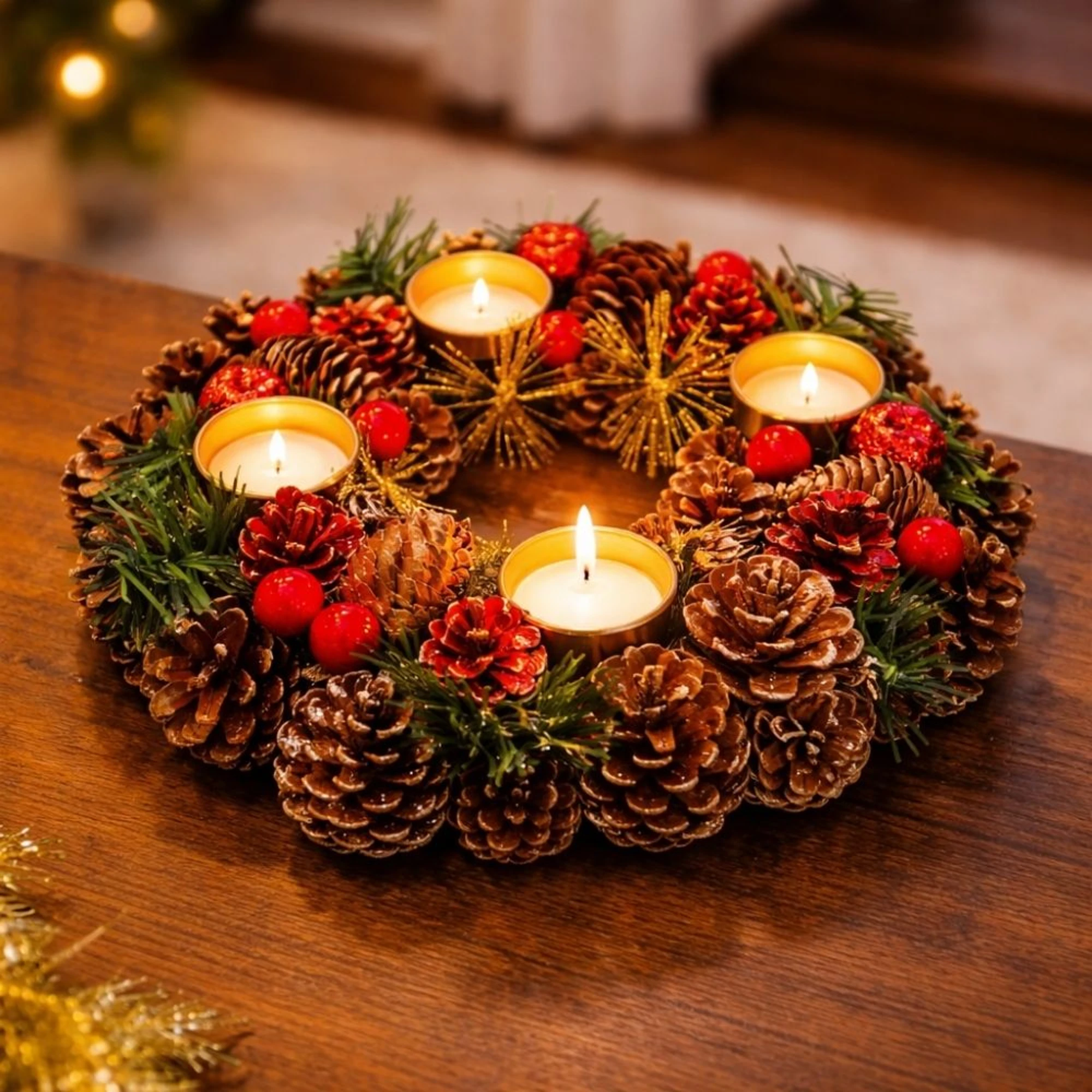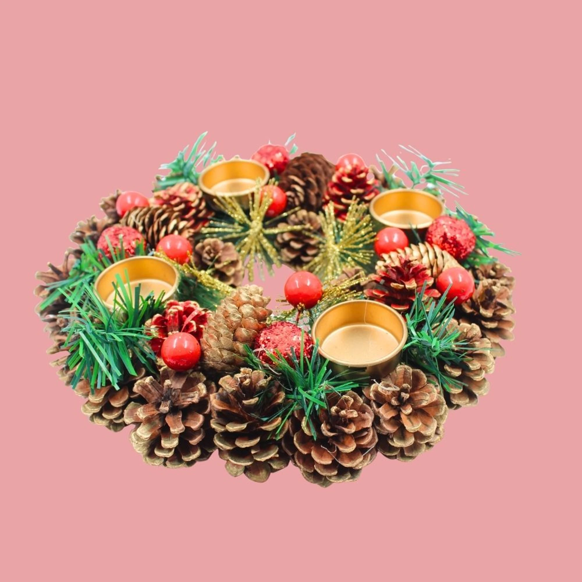 Celebrate the spirit of the season with this 26 cm Christmas Advent Wreath. Perfect for your table or door, this wreath brings a reminder of joy and anticipation to any space.