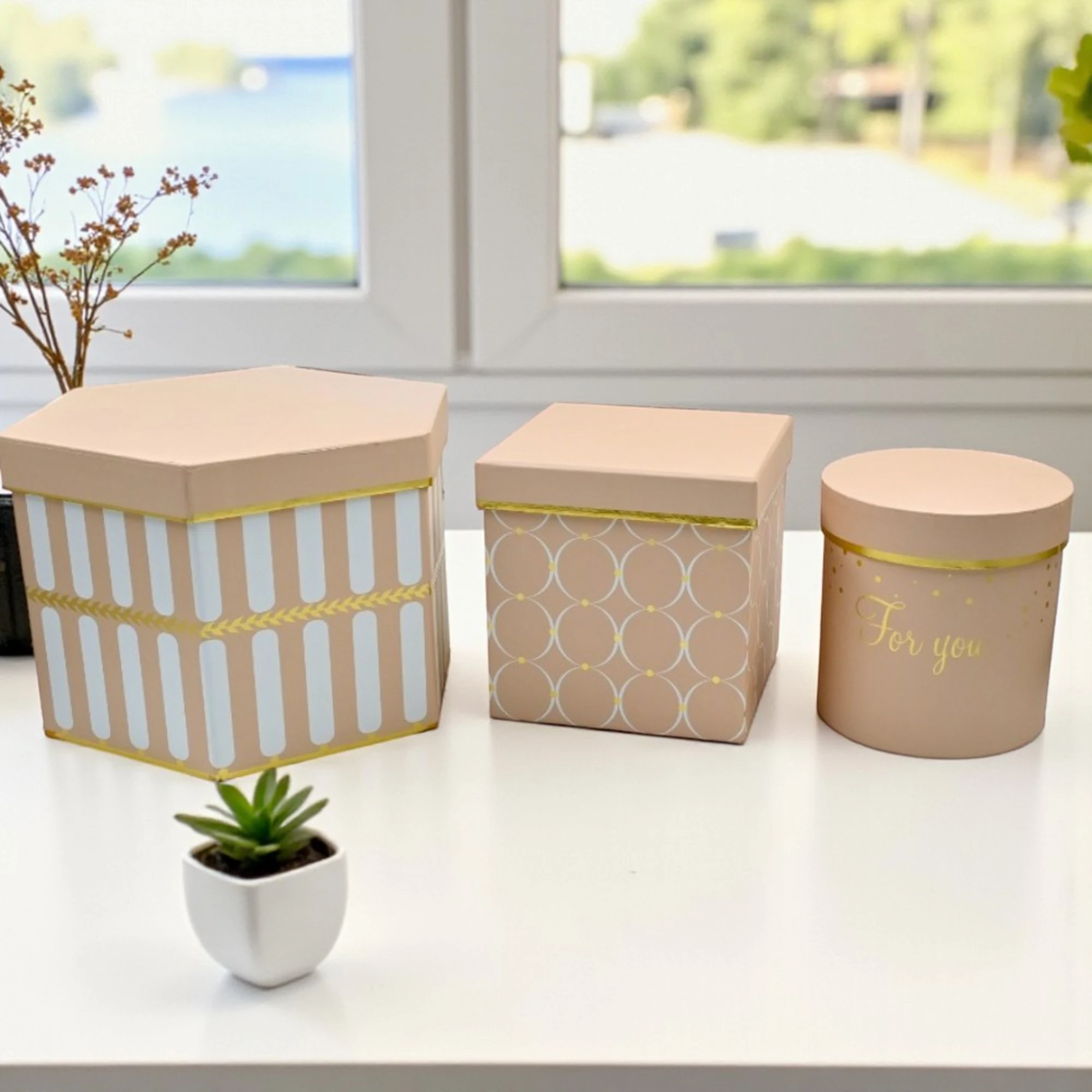Looking to add a touch of elegance to your gift-giving experience? This set of three beautifully crafted gift boxes is the perfect solution. With their charming beige hue and diverse shapes, these boxes turn every present into a cherished surprise.
