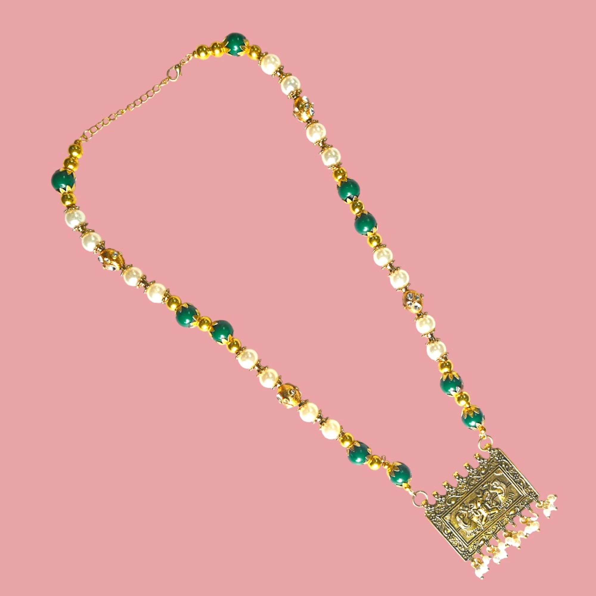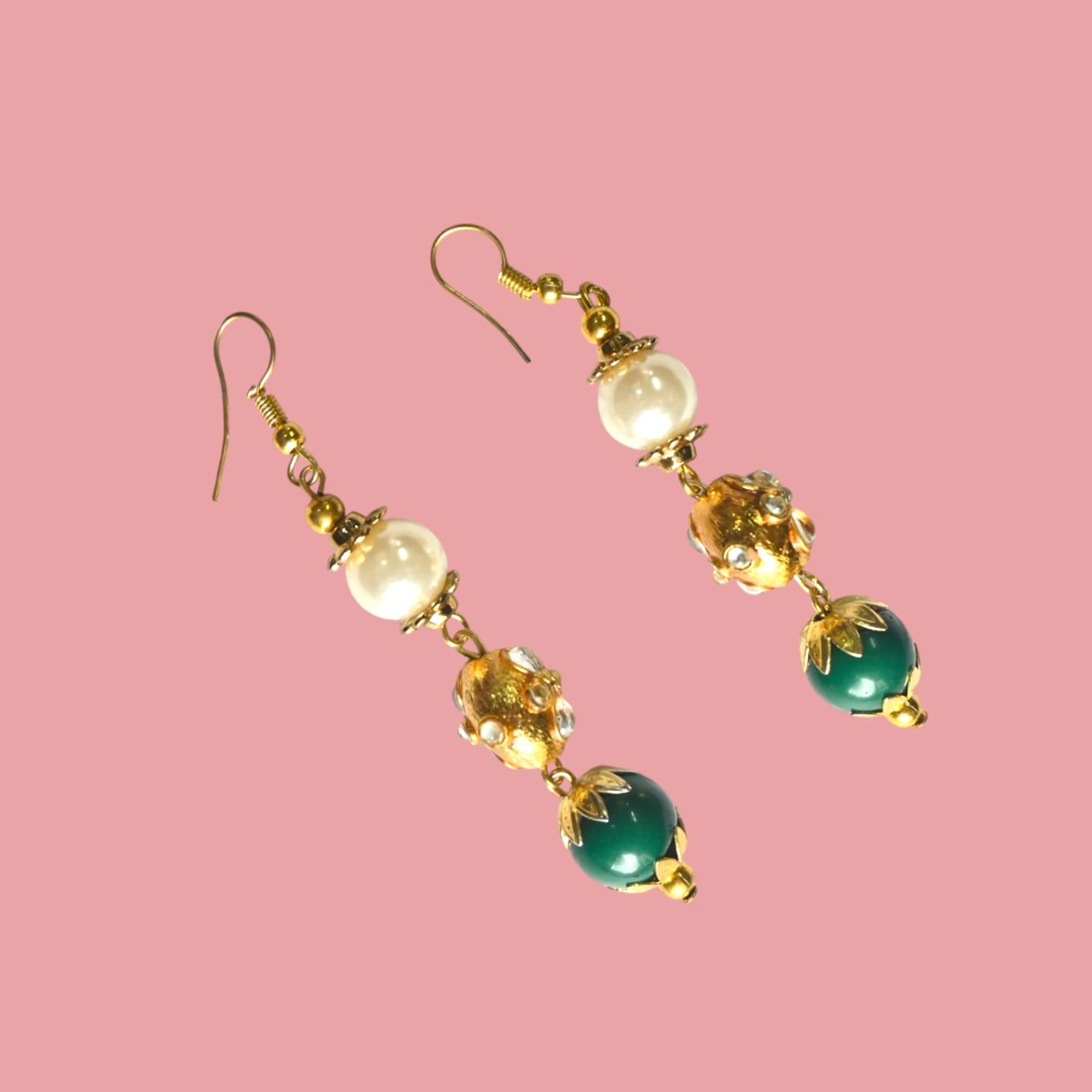 Add a touch of elegance to your look with these striking Gold Pendant Green and White Pendant Earrings Set. Crafted with care, this set combines the richness of gold with vibrant green and white elements for a dazzling effect.