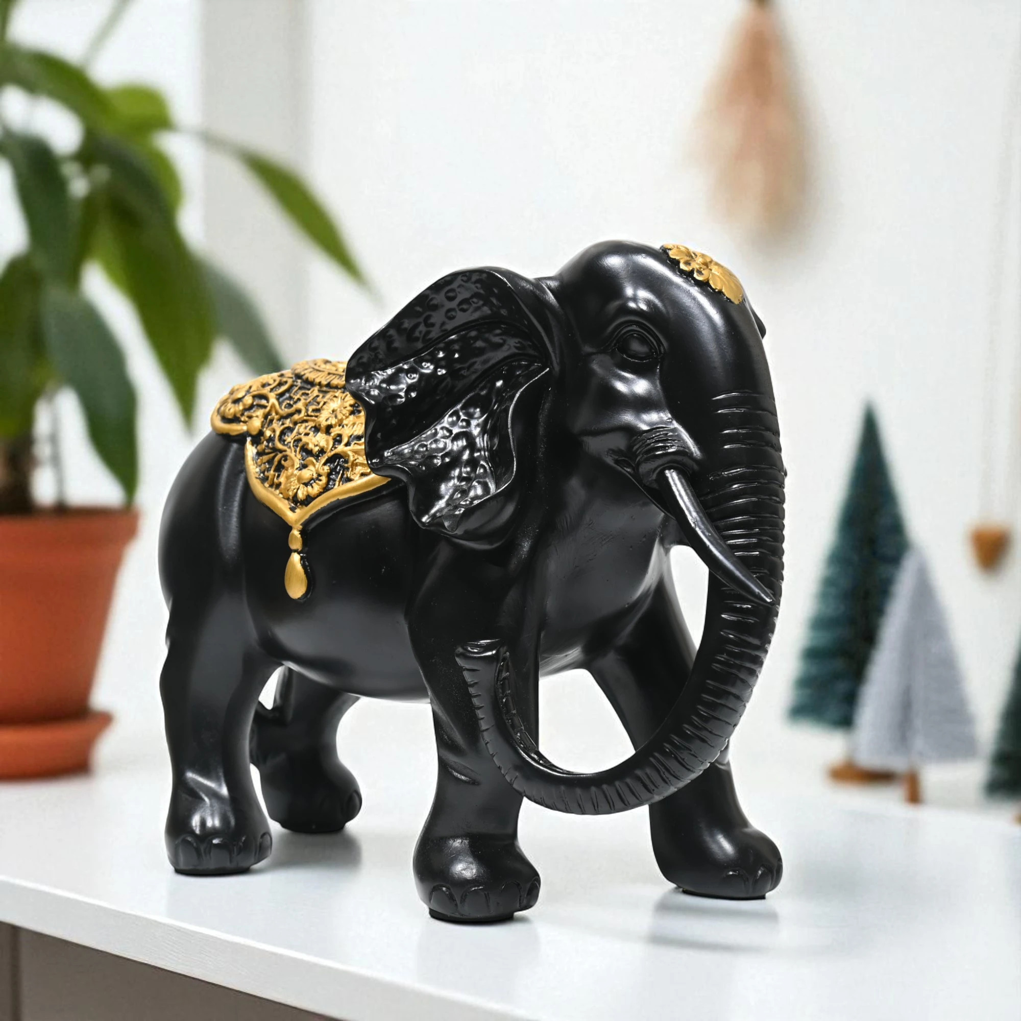 Whether you’re an avid collector or simply infuse a sense of charm and grandeur into your interior design, this Black Elephant with Gold Figurine is versatile enough to complement any style, from traditional to modern.