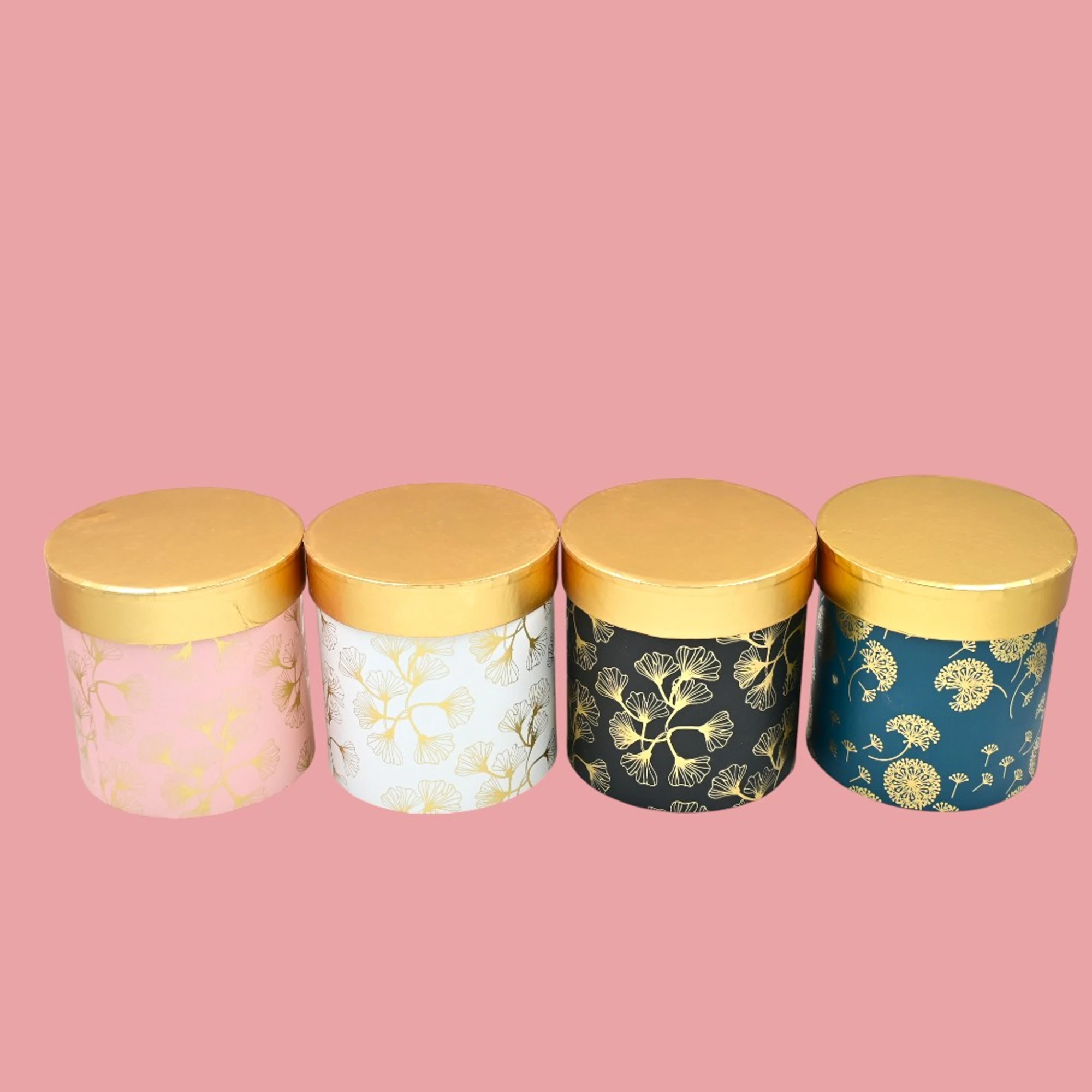 Unveil the charm of your gifts with our delightful Feather Print Round Gift Box Set. This set of four unique boxes is the perfect addition to your gifting arsenal, each designed with a touch of elegance and whimsy. With choices covering pink, black, and white feather prints, plus an elegant solid base gold flower print, your presents will never look the same.
