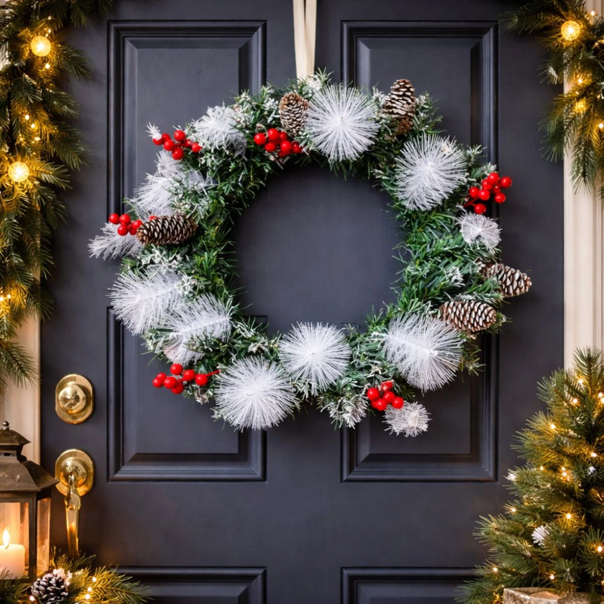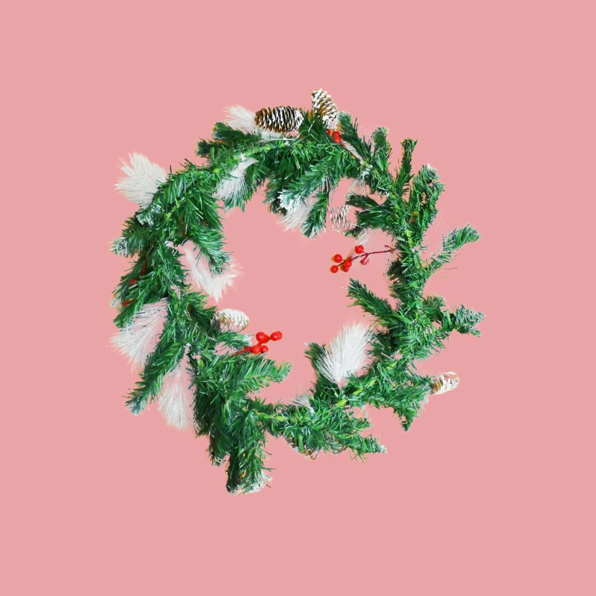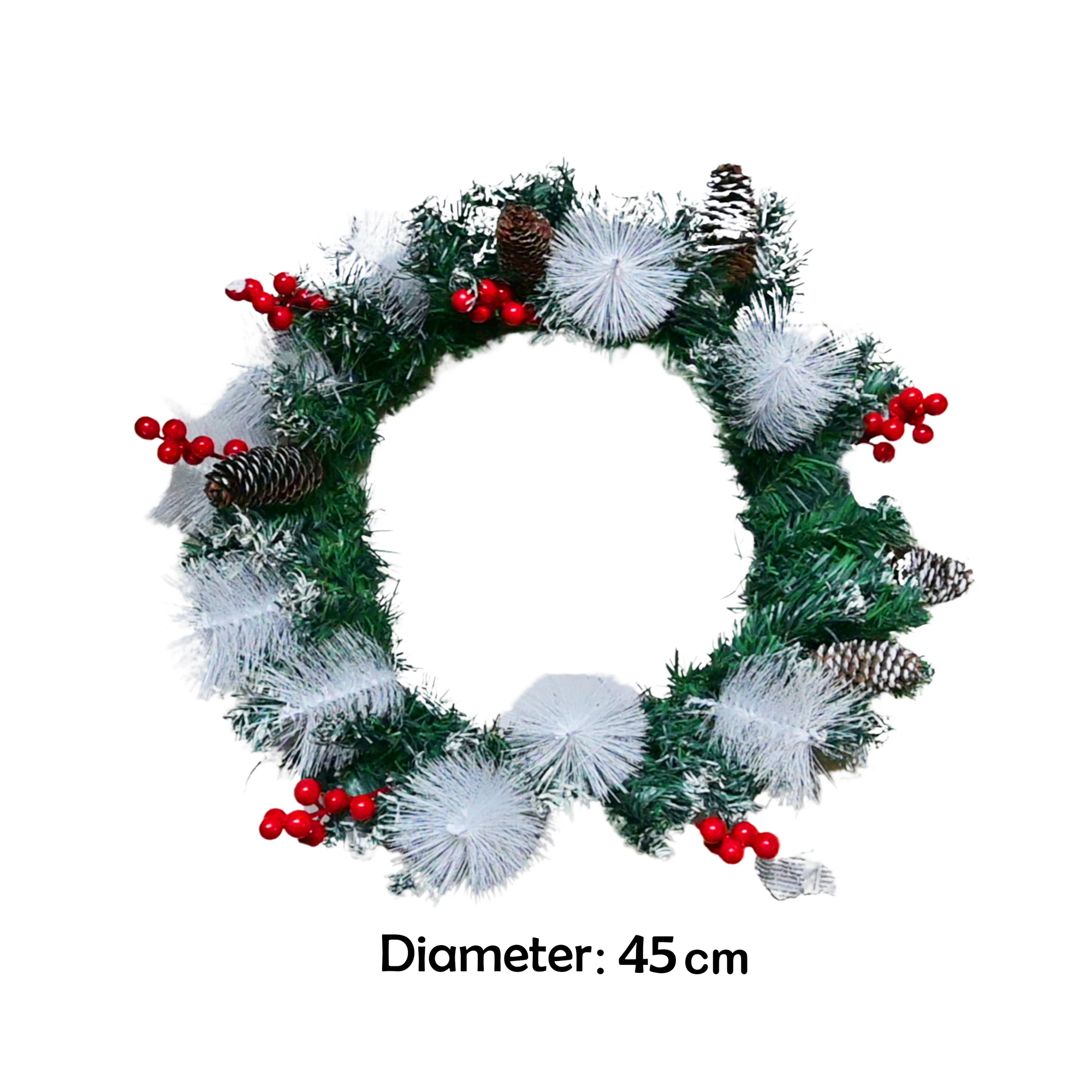 Bring holiday cheer to your home with our XMAS Wreath with Cherry Pine White Bristles. This 45 cm wreath is a dazzling addition to any festive decor setting.