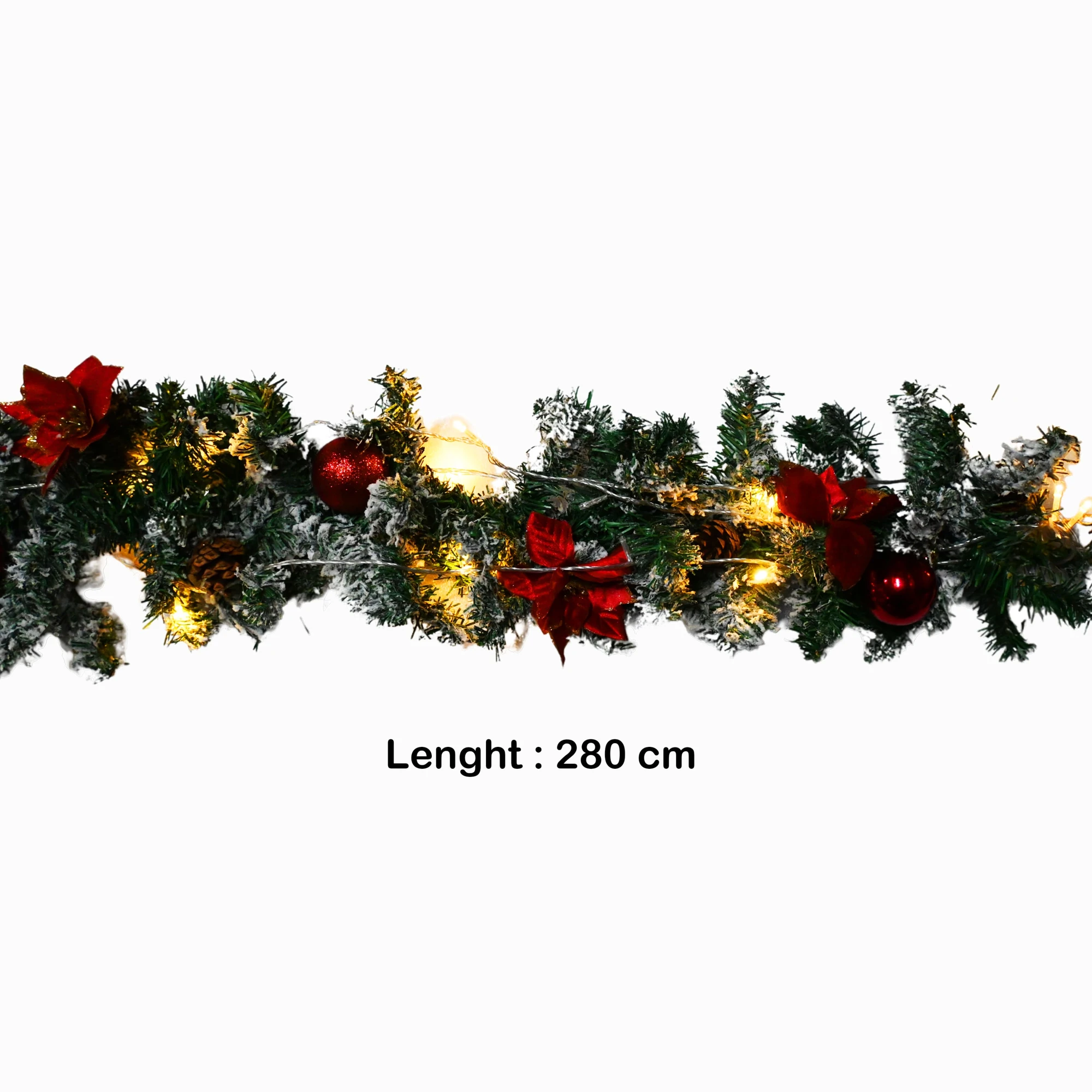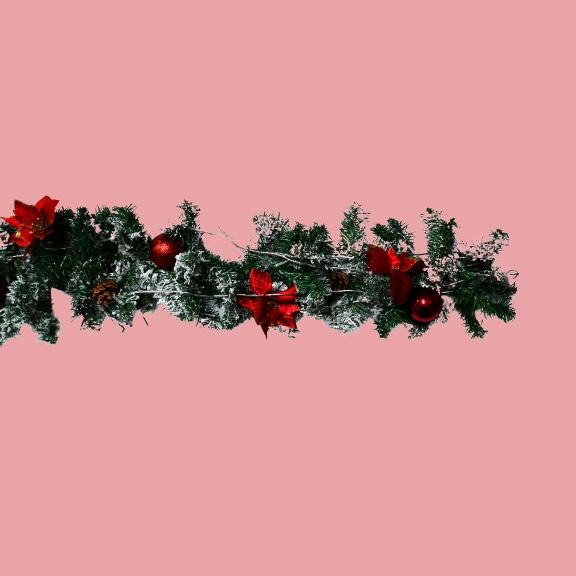 Deck the halls with our 9ft Red Snow-Effect Garland, perfect for adding some festive cheer to your home. This garland is a bright red beauty, adorned with a light dusting of faux snow for that winter wonderland feel.