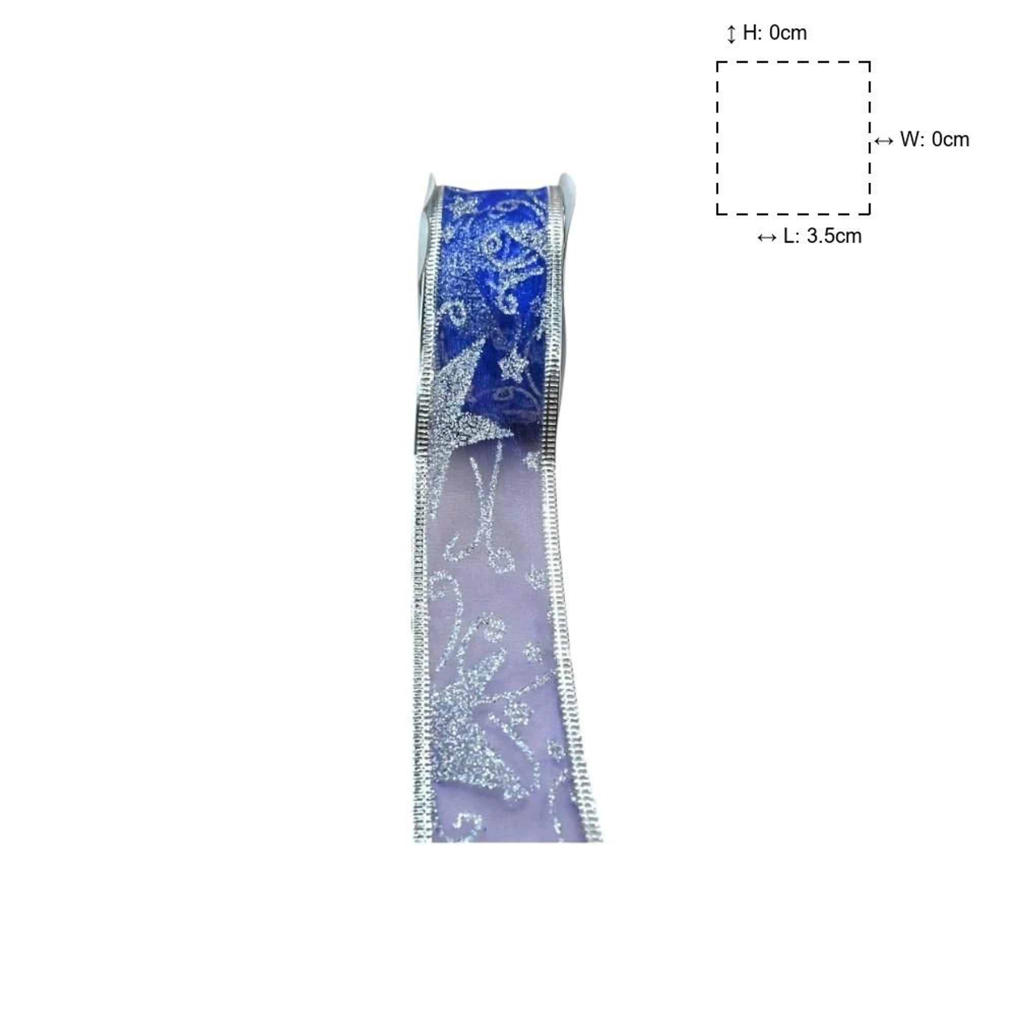 Spruce up your holiday decorations with a touch of elegance using our XMAS Wired Organza Blue Silver Star Ribbon. This ribbon, measuring 3.8 cm in width and 2.7 meters per roll, is perfect for adding a stylish flair to any festive project.