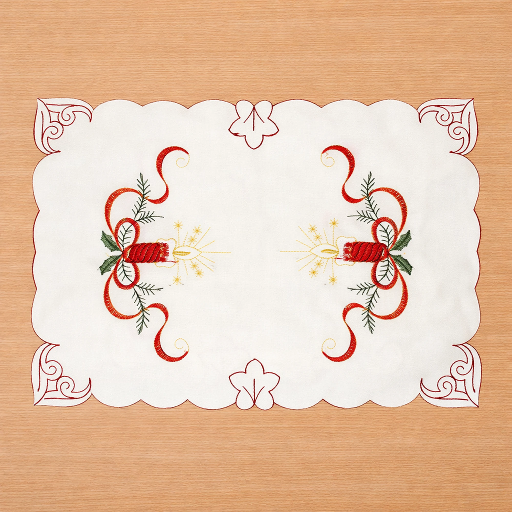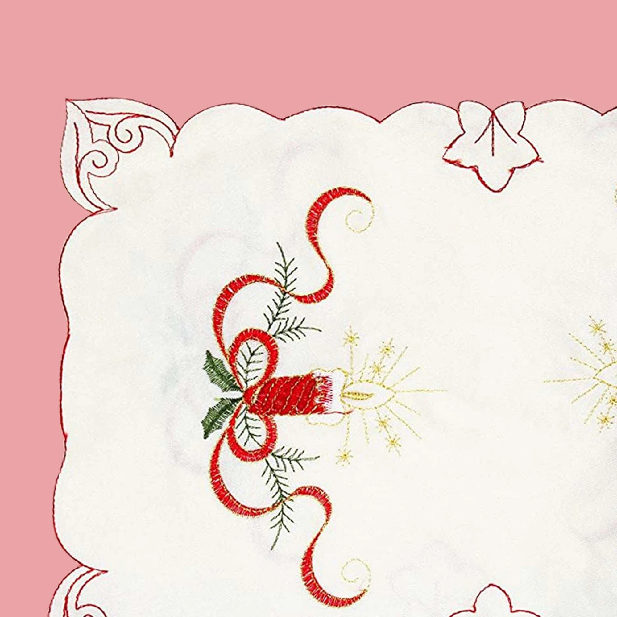 Add a touch of festive elegance to your dining experience with our XMAS Embroidered Cutwork Table Mats. Perfect for hosting family dinners or holiday gatherings, these mats feature exquisite embroidery showcasing classic holiday motifs. The delicate cutwork adds an extra layer of sophistication to your table setting, capturing the spirit of the season beautifully.