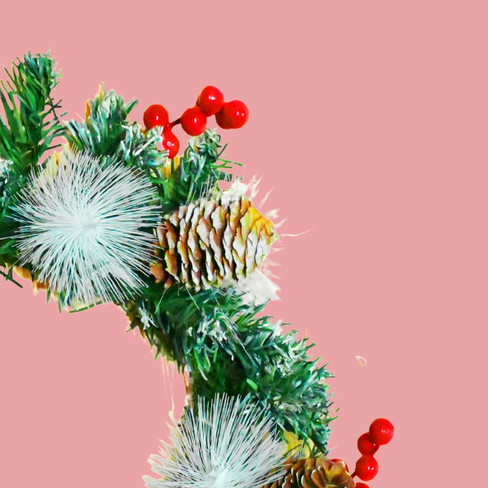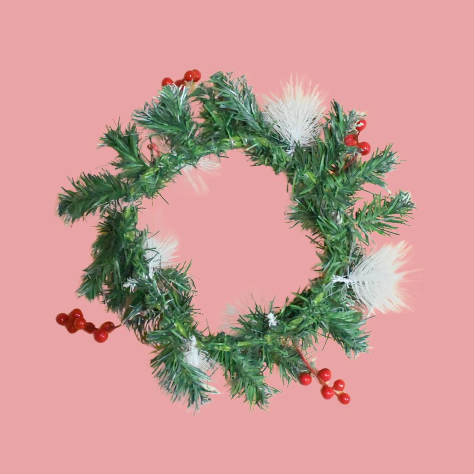 – Festive Design: Beautifully crafted with cherry pine leaves and white bristles.