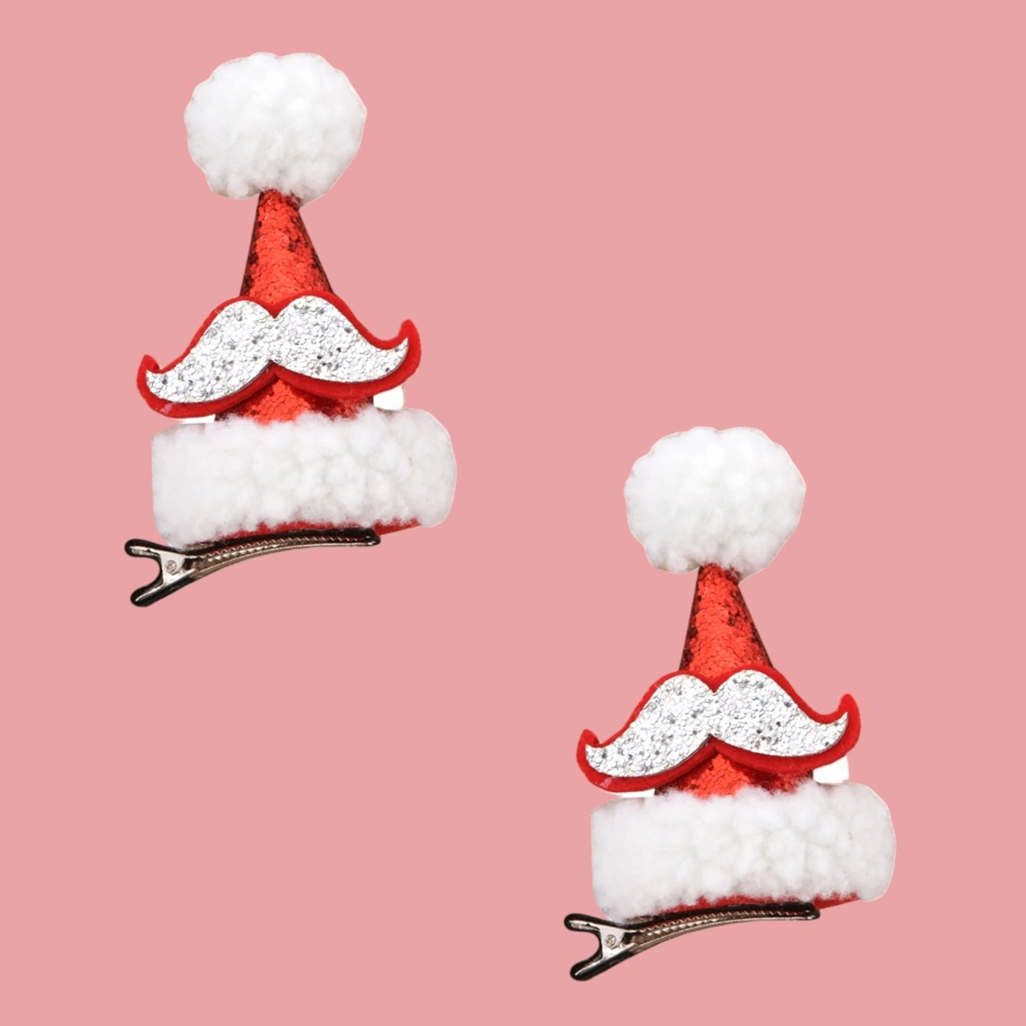 – 2 Santa hat moustache clips