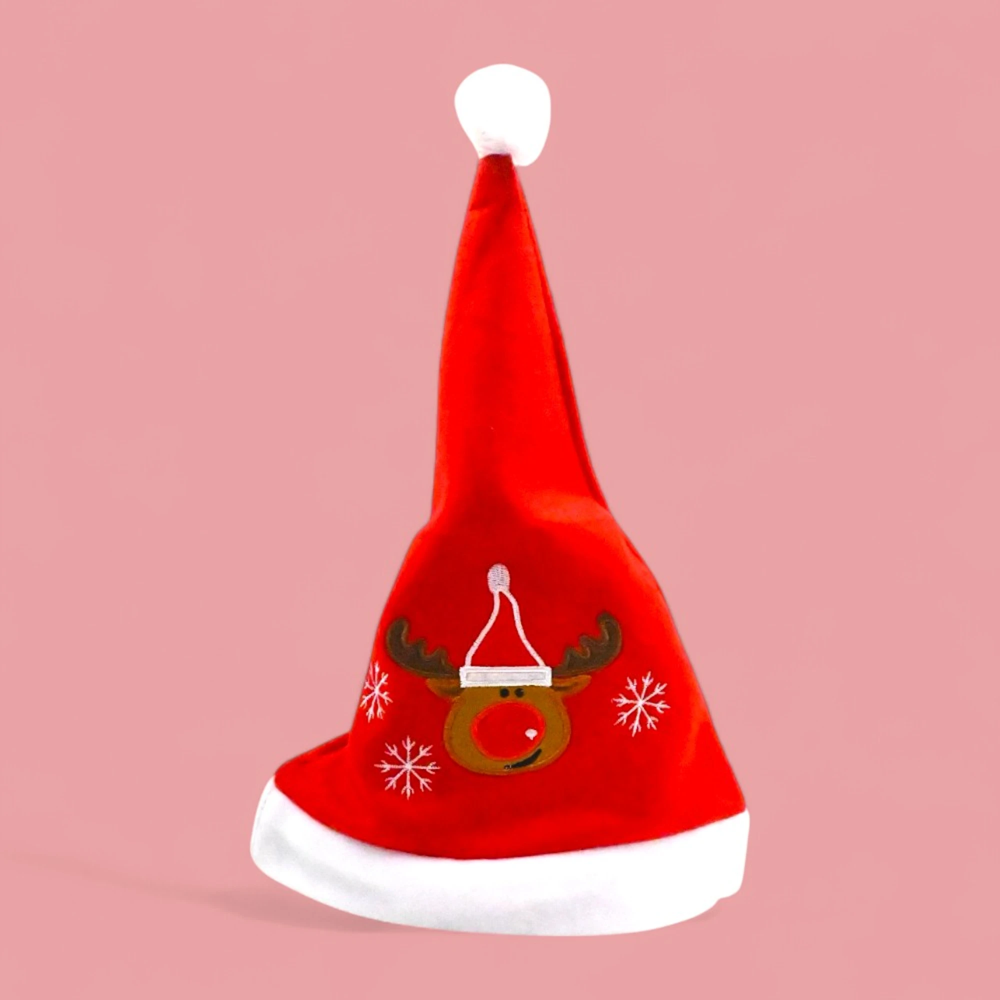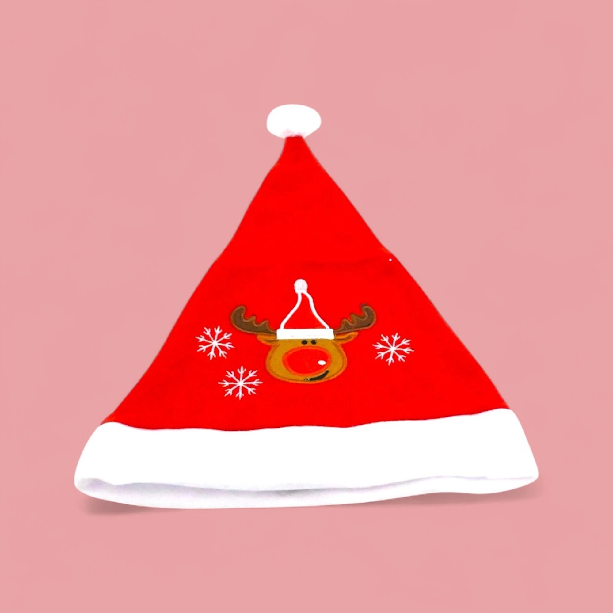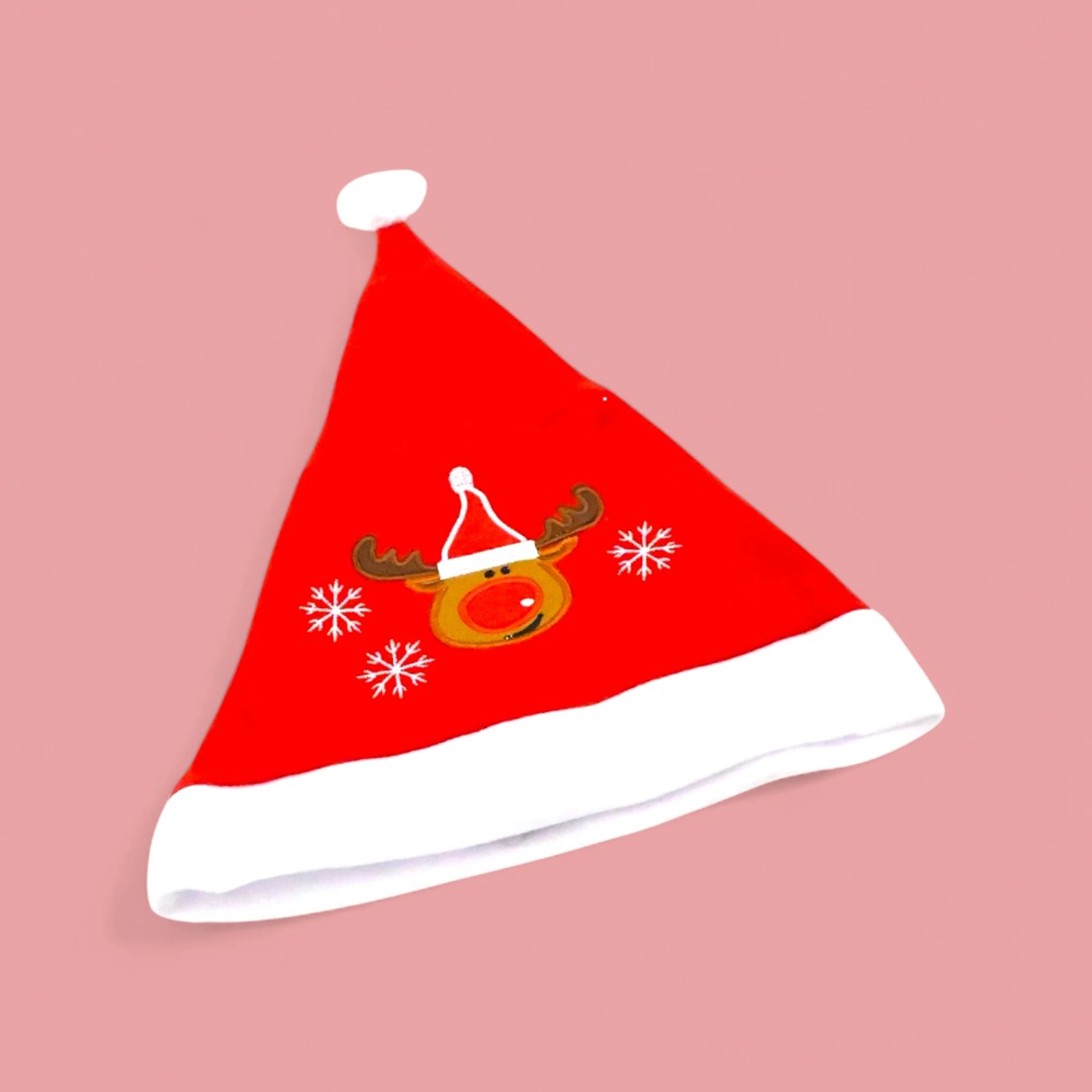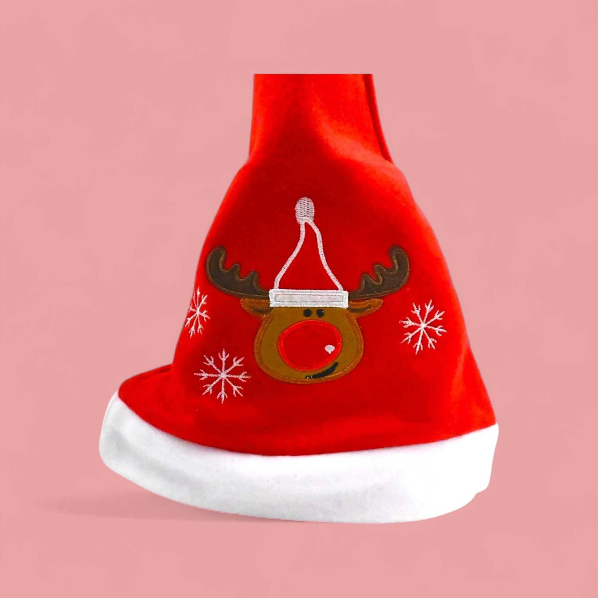Add a dash of holiday cheer with our Embroidered Reindeer Santa Caps!