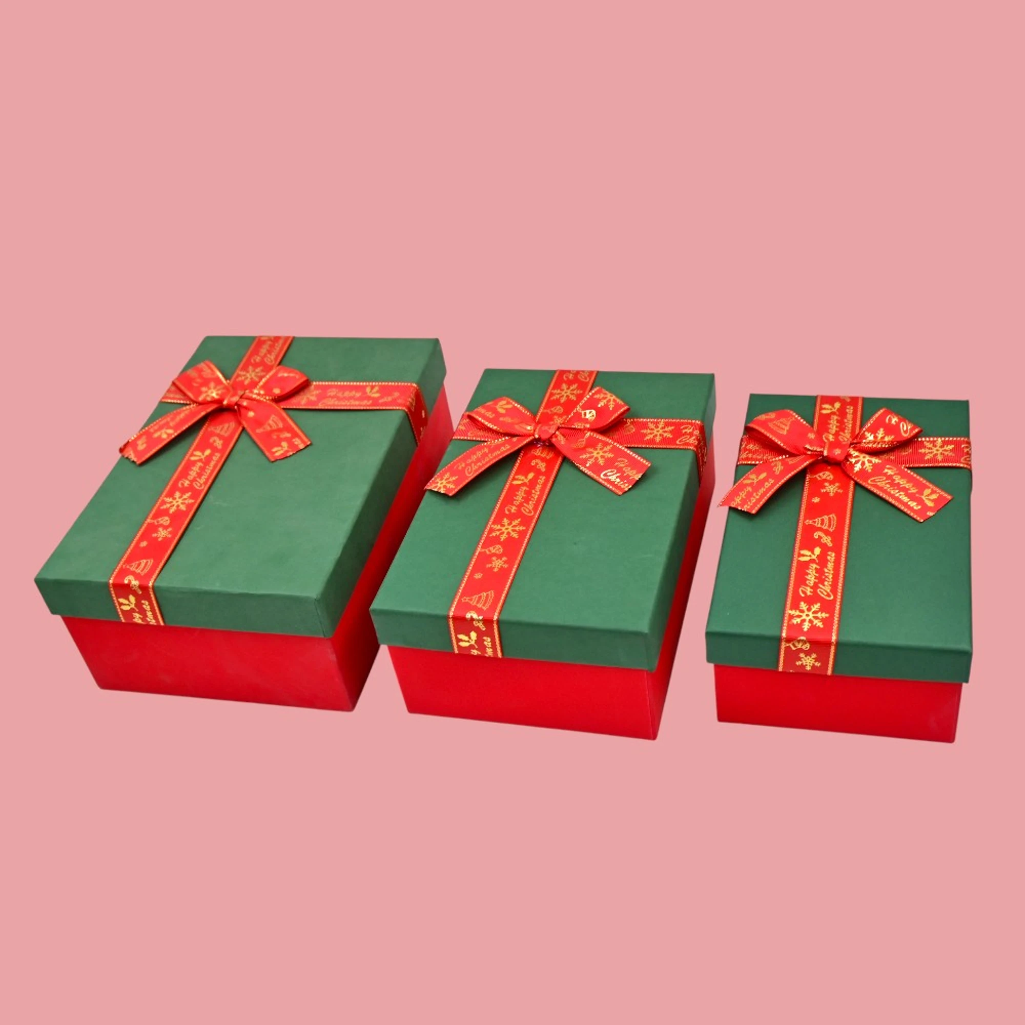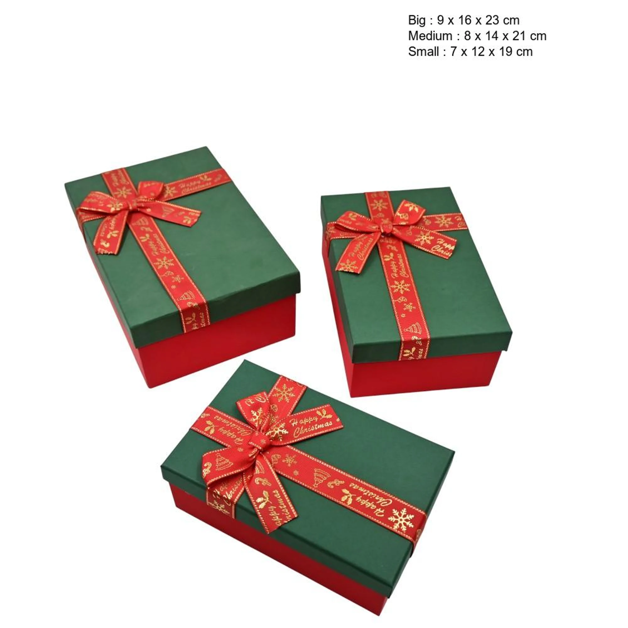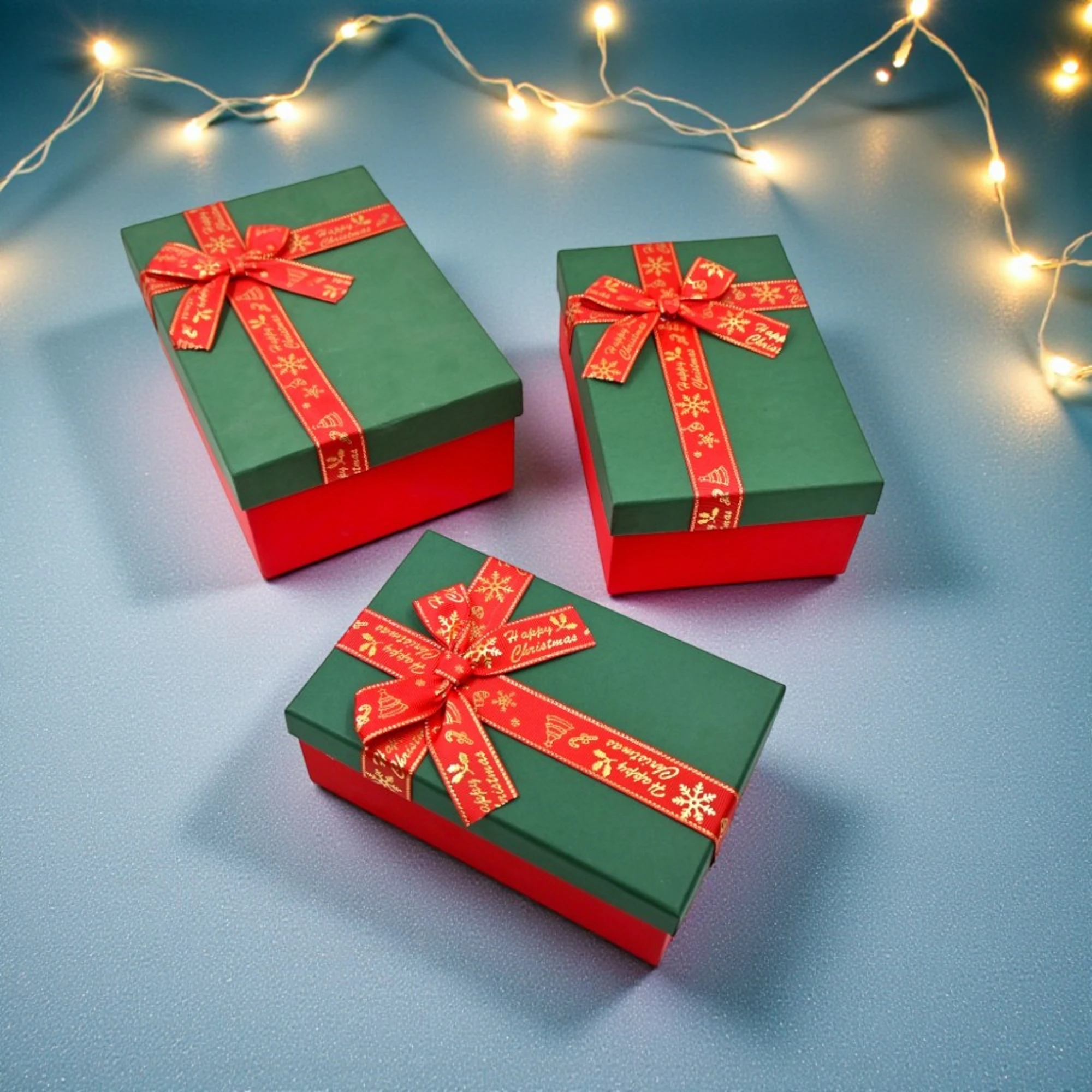 Deck the halls and your gifts with this charming set of three Christmas-themed rectangular gift boxes, coming in sizes big, medium, and small. Perfect for stacking under the tree or gifting to someone special, these boxes are as practical as they are delightful.