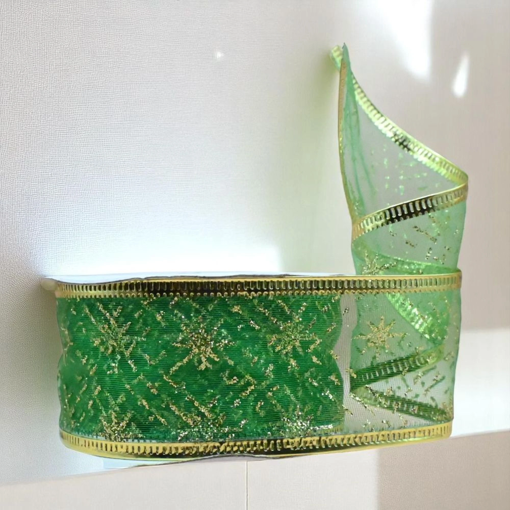 Add a touch of festive charm to your holiday decorations and crafts with our XMAS Wired Organza Green Star Ribbon! This delightful ribbon, measuring 3.8 cm in width and stretching a generous 2.7 meters per roll, is the perfect accessory for adding a pop of color and sparkle to your seasonal projects.