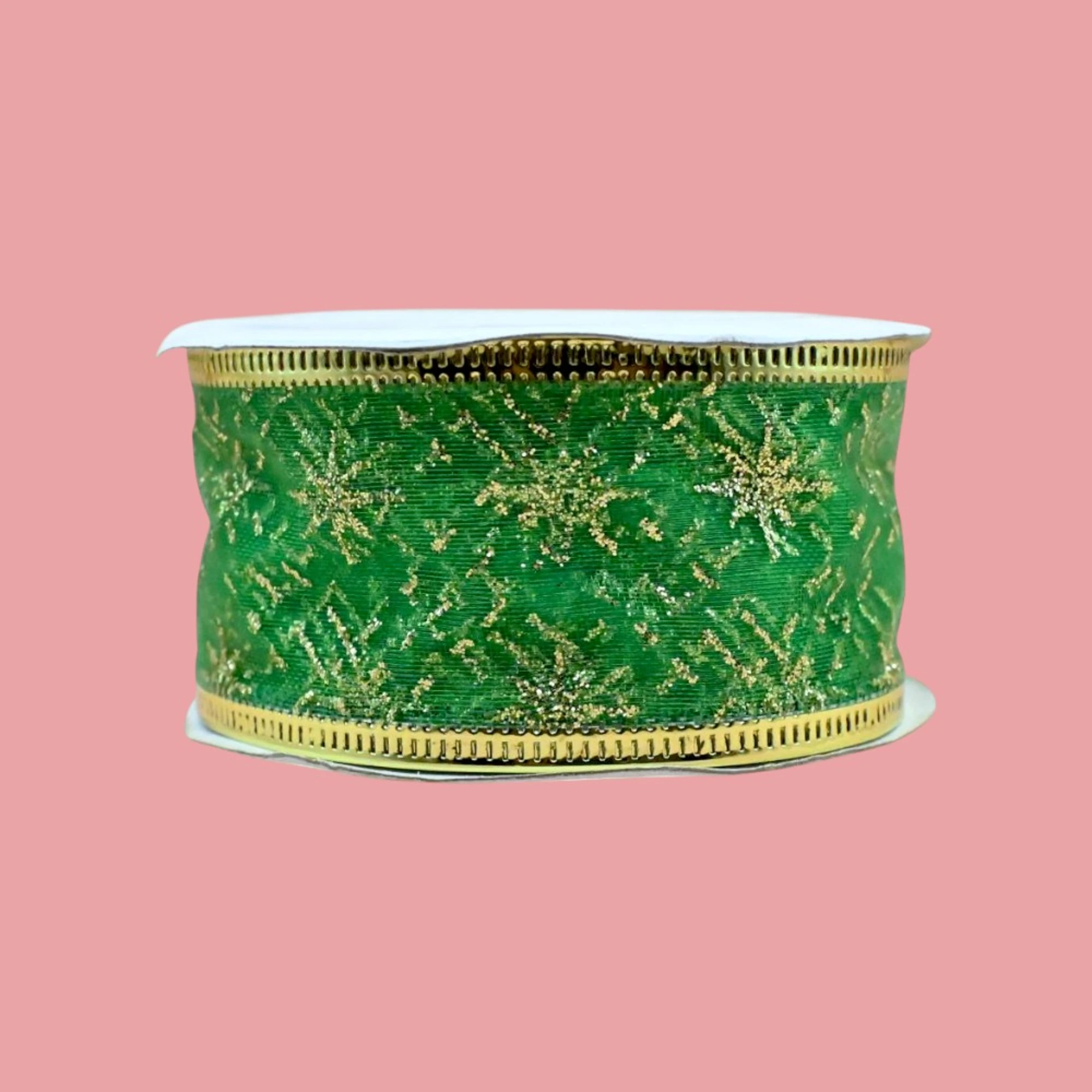 Crafted with a beautiful organza material, this ribbon features stunning green stars that capture the magic of the holidays. The wired edges make this ribbon easy to shape and hold in place, ensuring your bows and designs stay picture-perfect.