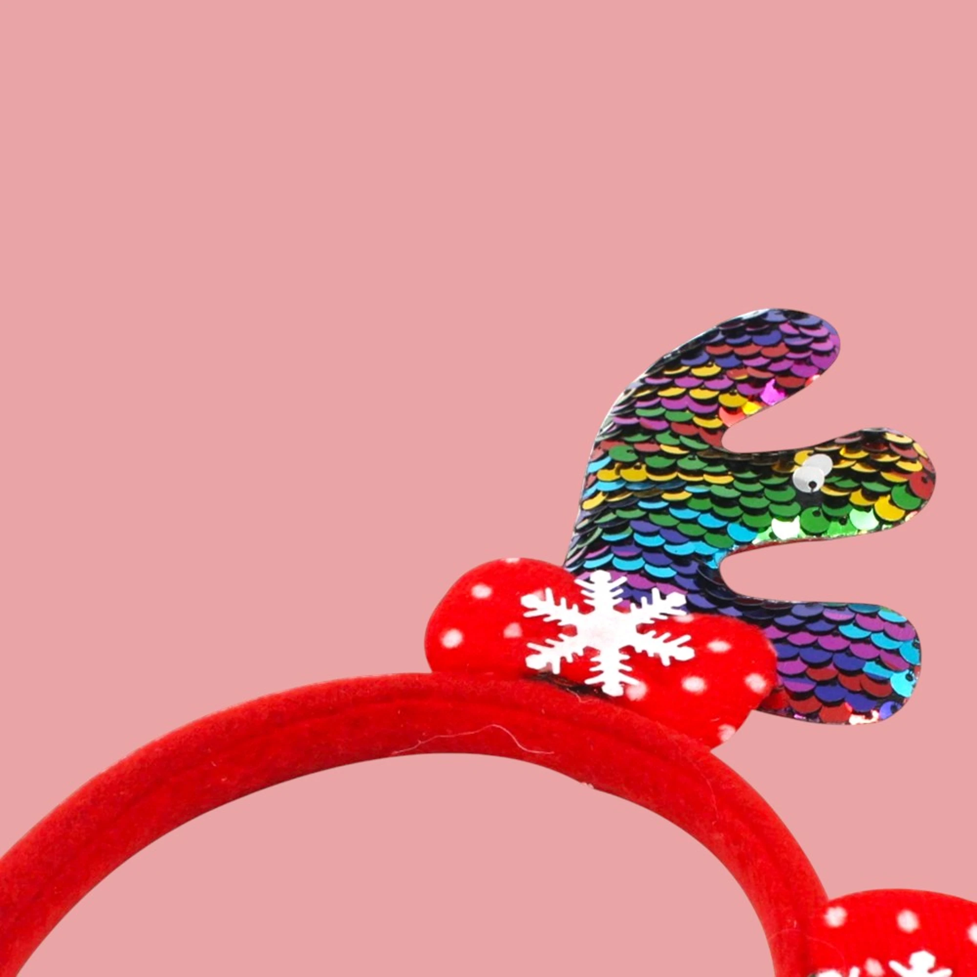 – XMAS REINDEER SEQUINS HAIR BANDS: Available in multi-color, red, and gold, these hair bands are adorned with shimmering sequins. Whether you’re hosting a Christmas party, attending a festive gathering, or just around the Christmas tree, they are sure to add a dash of sparkle to your look.